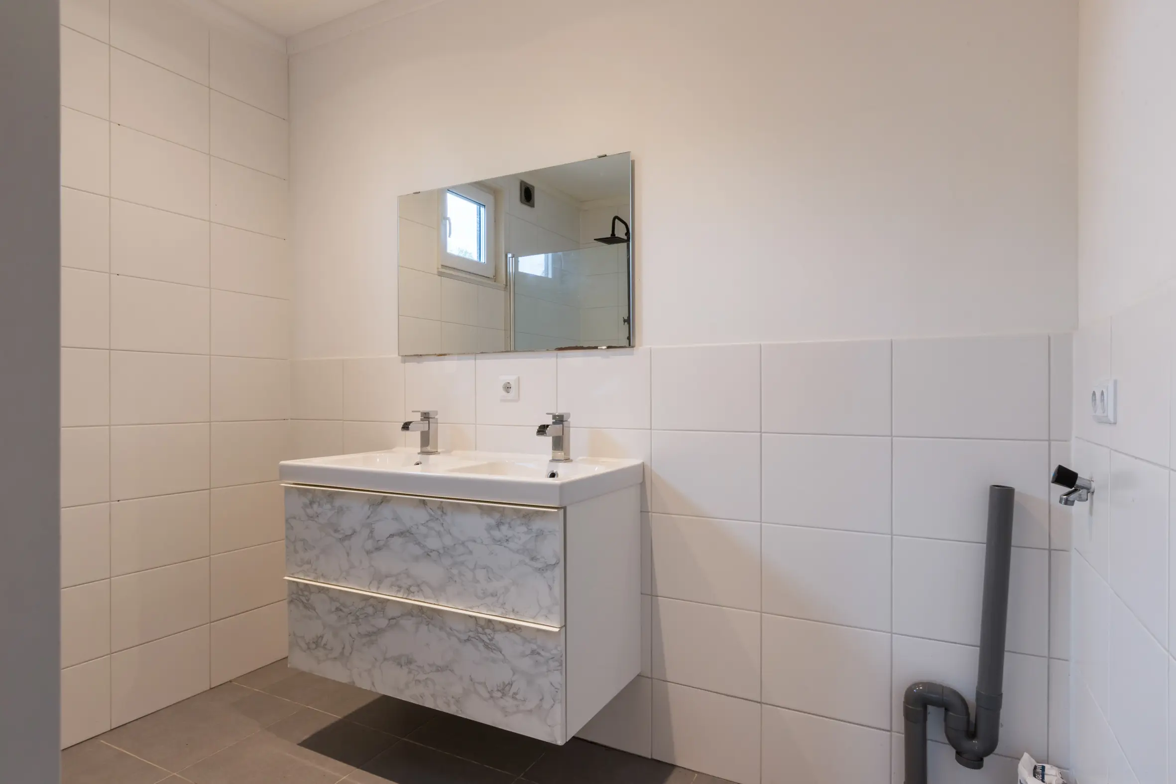 - Wastafelmeubel met dubbele kraan;