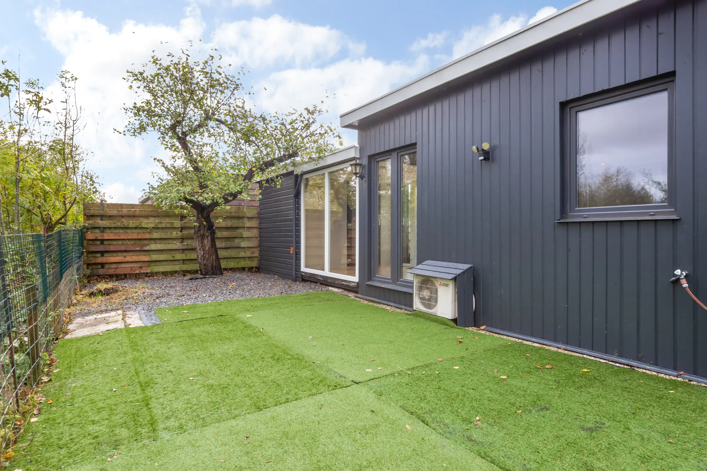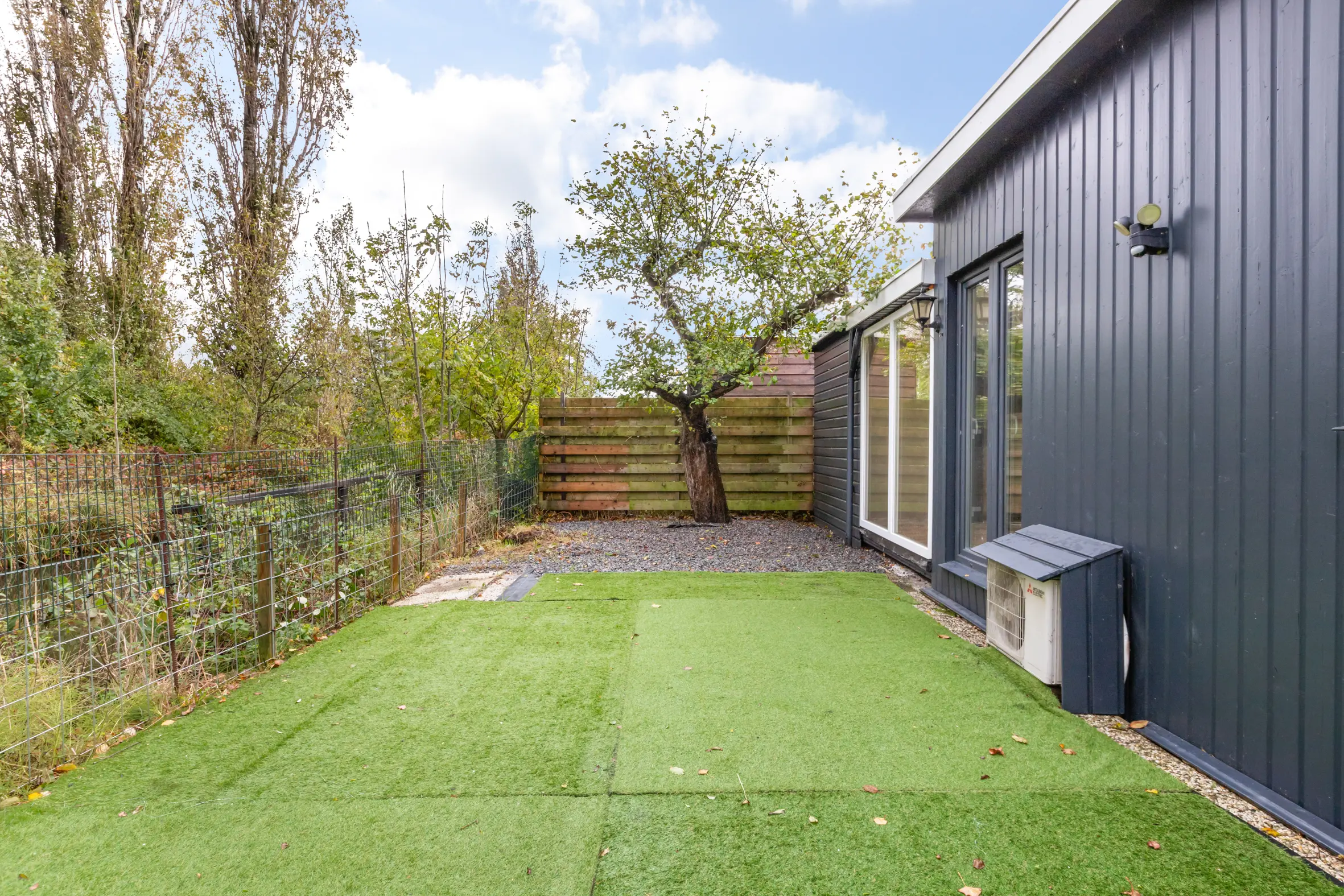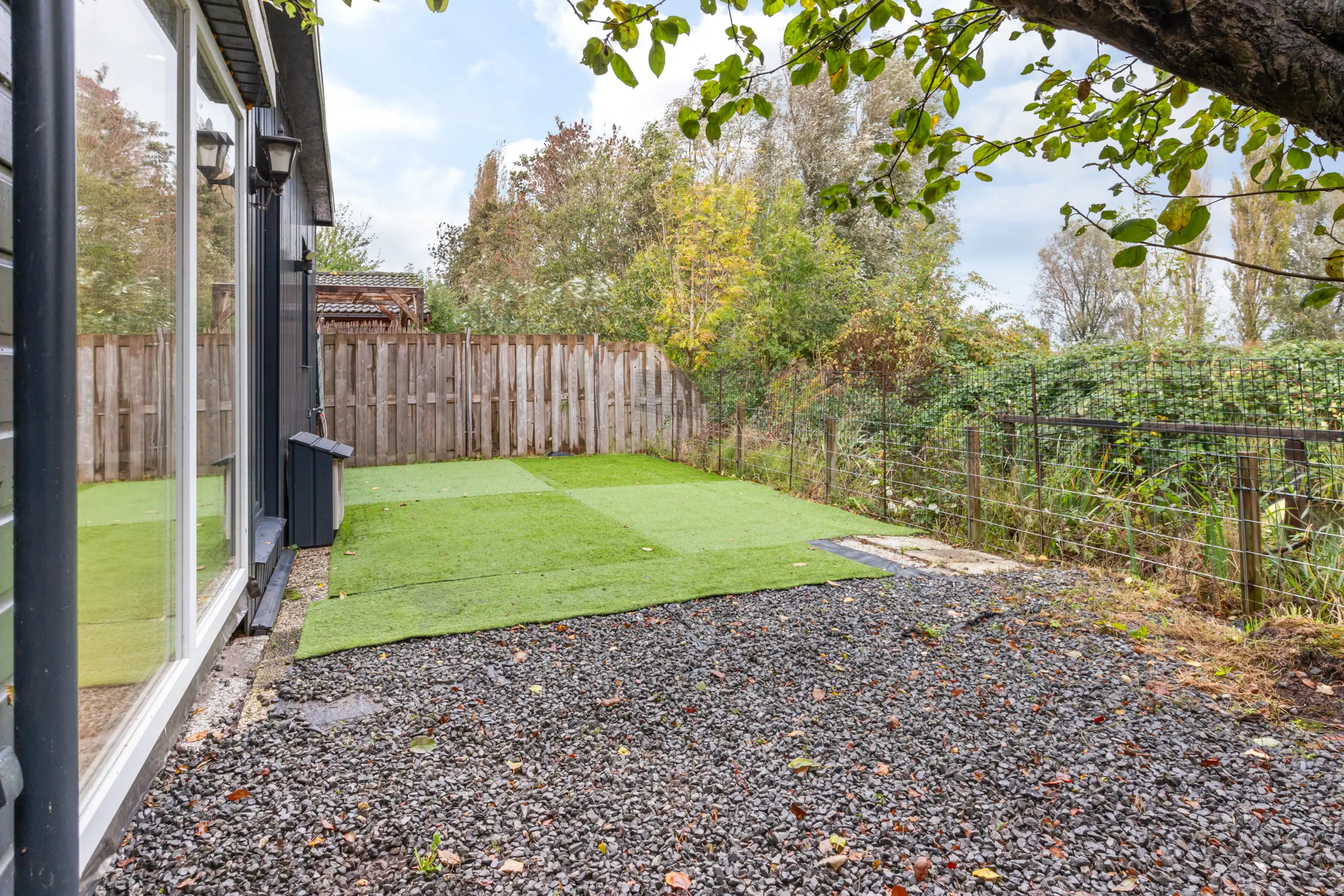 De tuin rondom heeft een oppervlakte van ca. 139 m² en biedt een vrij en groen uitzicht. Door de ligging aan het water aan de achterzijde, heb je hier veel privacy.