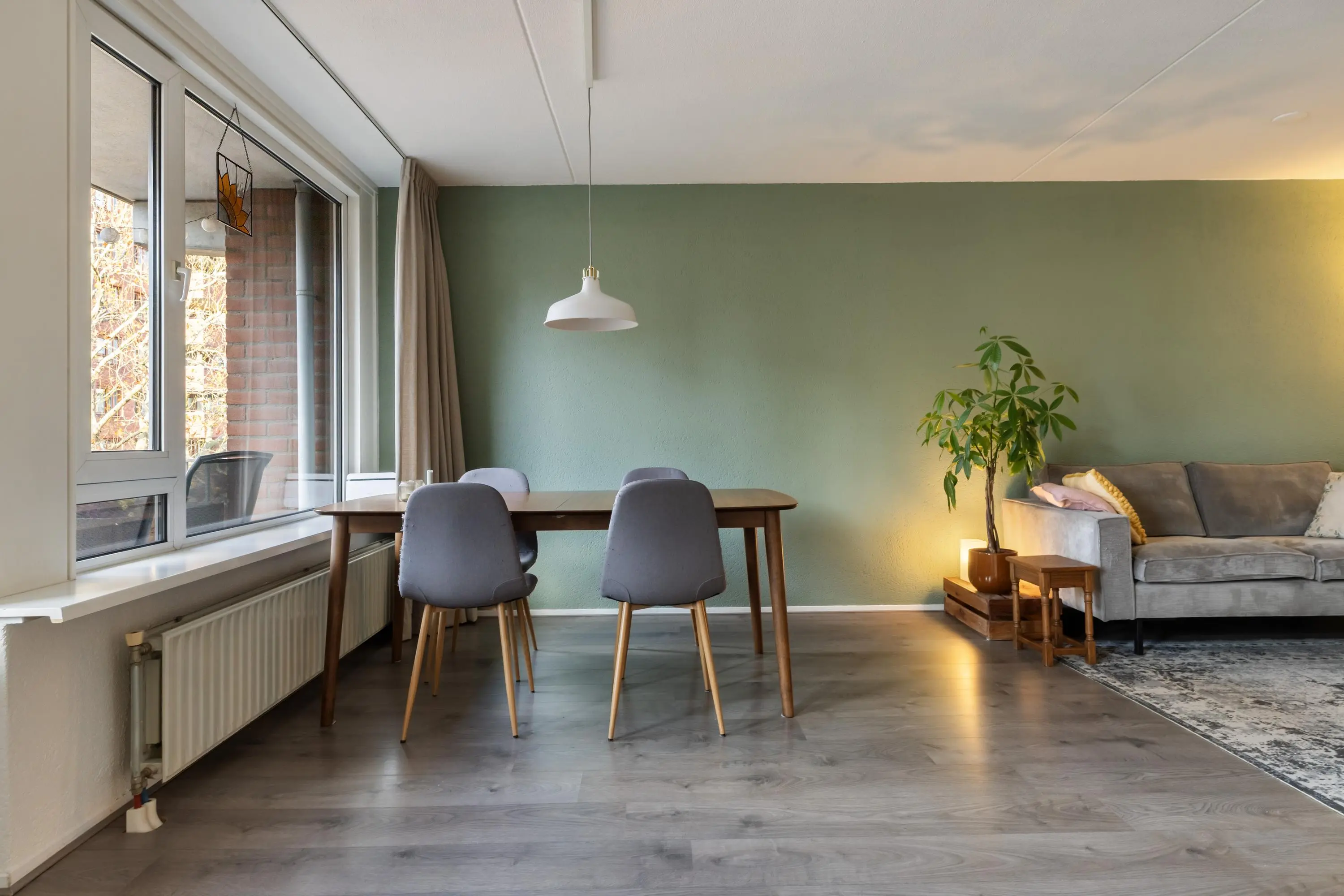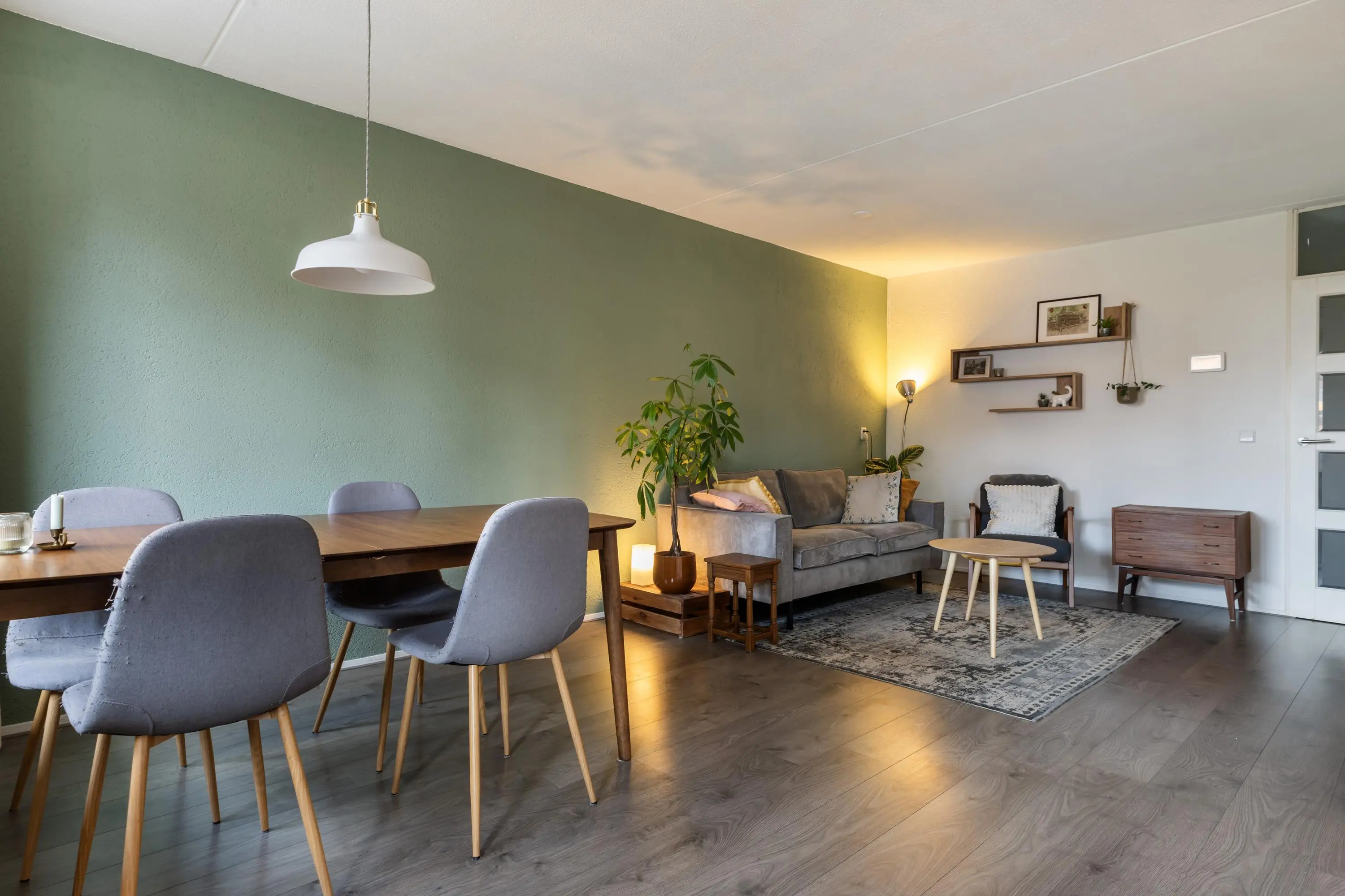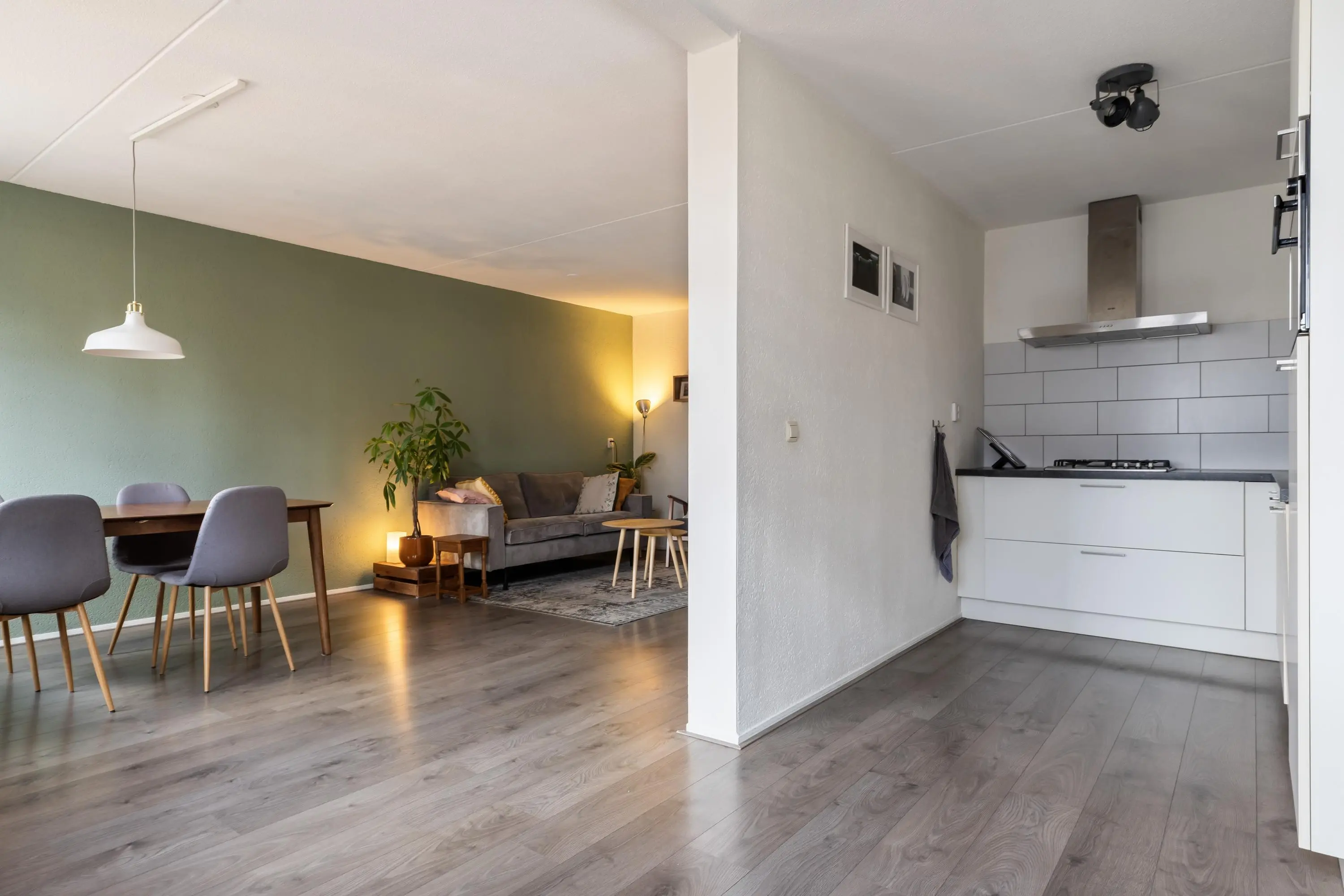 In de hele woning ligt een laminaatvloer.