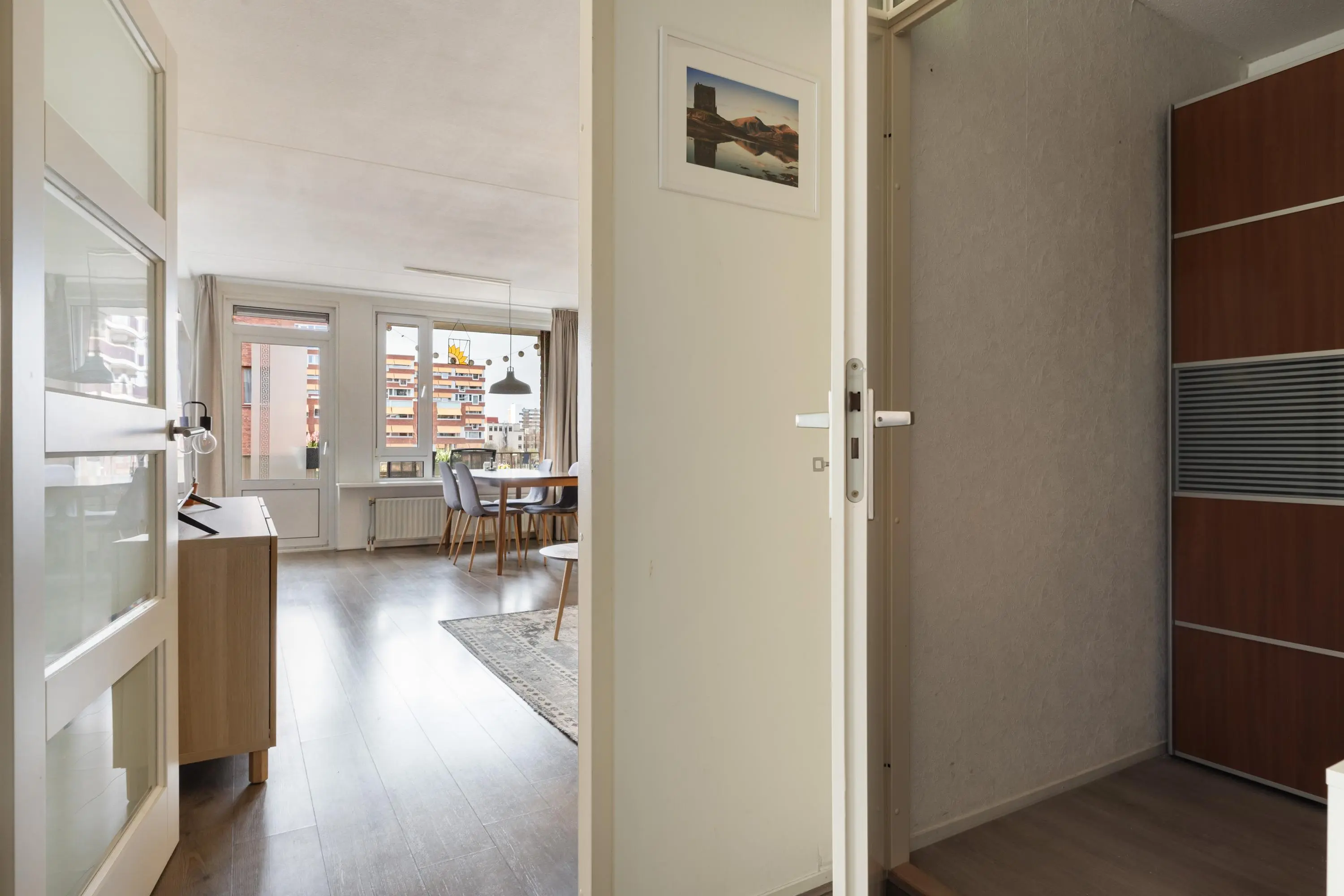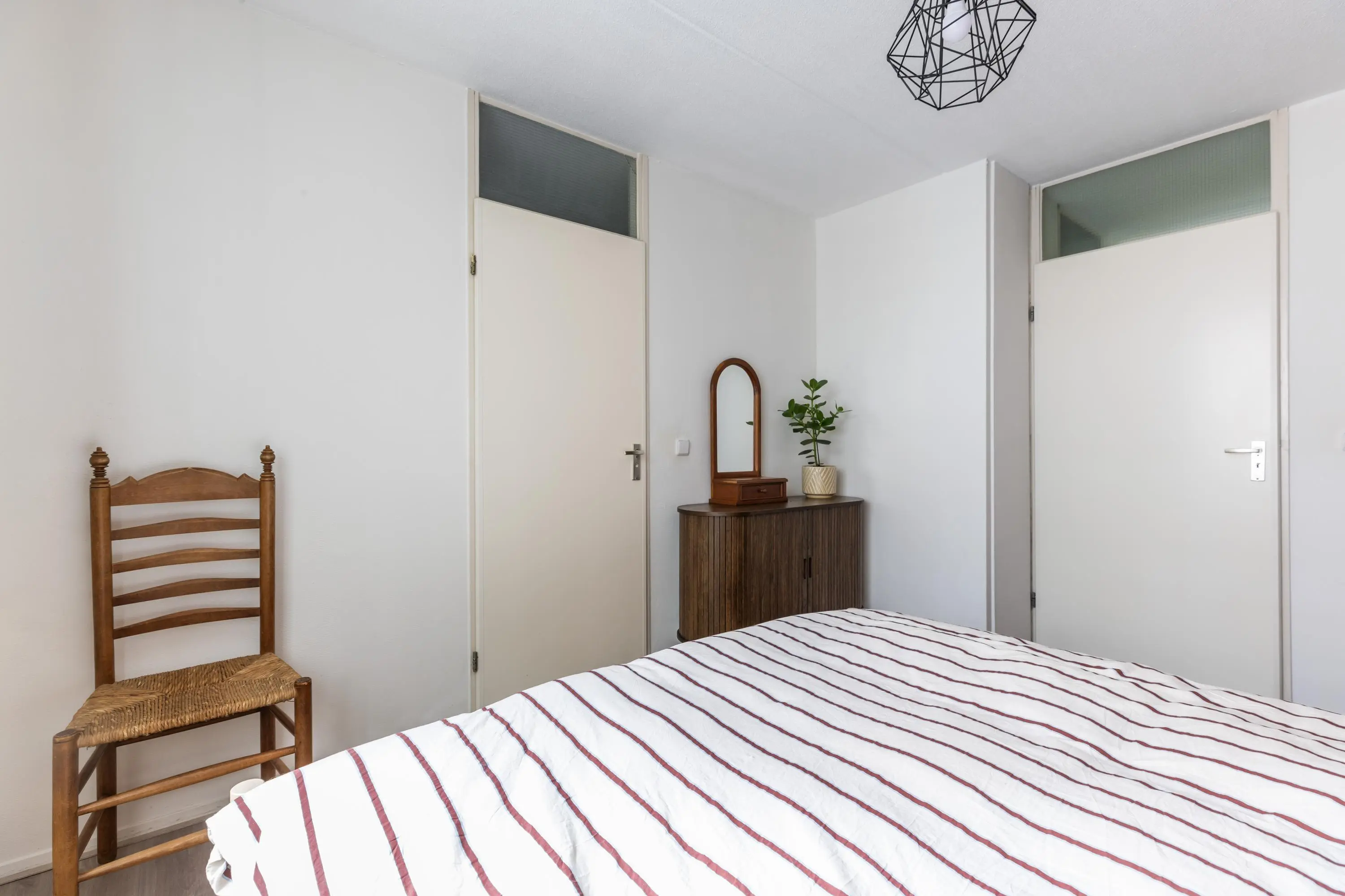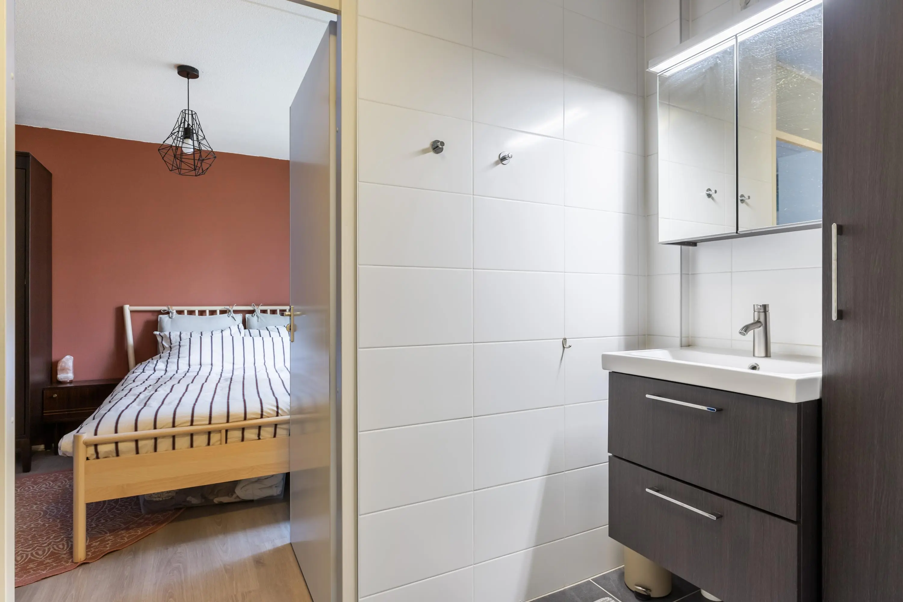 Het appartement beschikt over twee slaapkamers. De grootste slaapkamer is ruim opgezet en biedt directe toegang tot de badkamer. Ook de tweede slaapkamer heeft een deur naar de badkamer, wat zorgt voor een doorloop indeling.