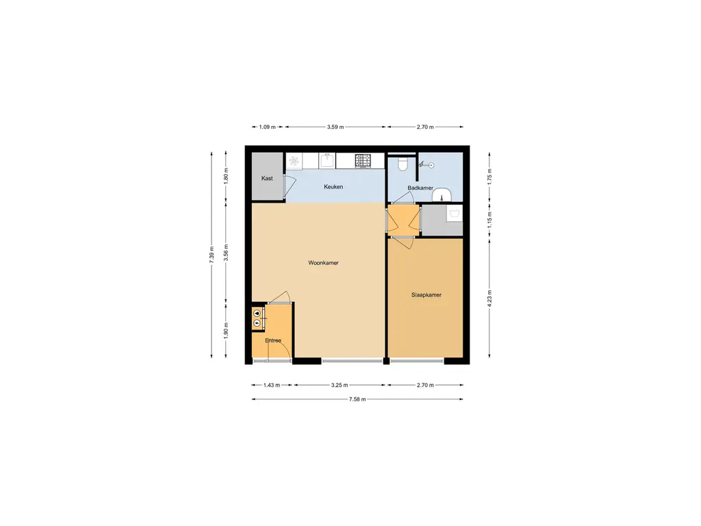 Direct naast de keuken aan de linkerzijde is een ruime voorraadkast te vinden.