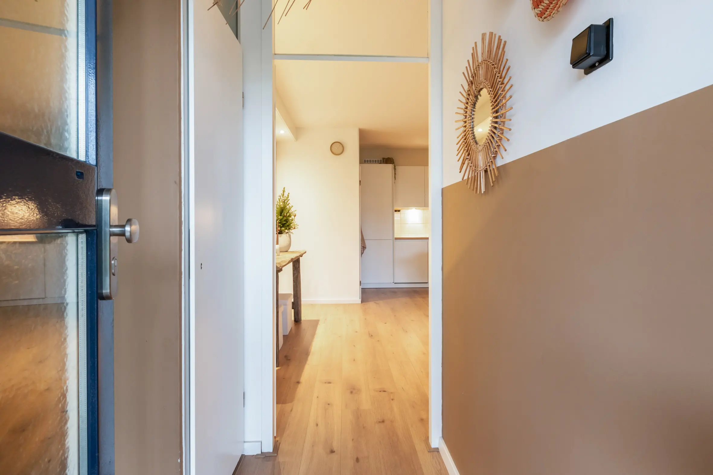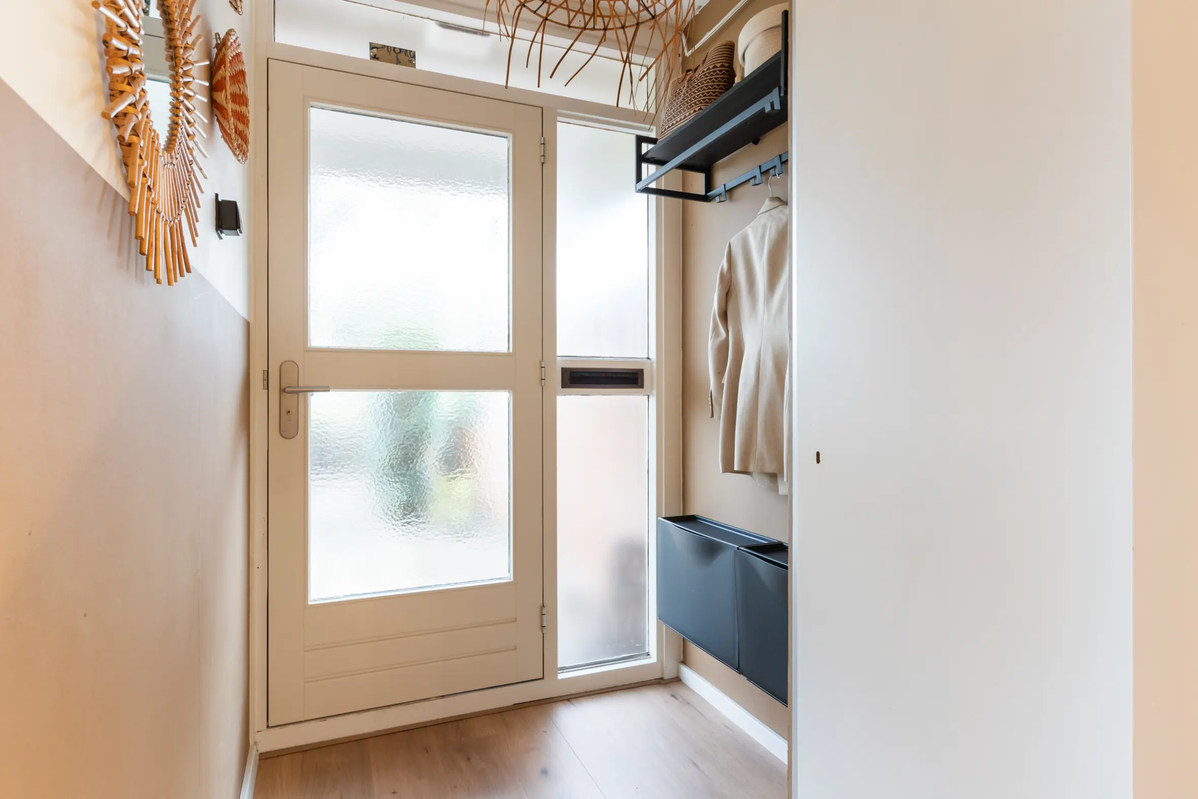 Binnenkomst in een hal met meterkast en garderoberuimte. Hier bevindt zich ook de meterkast (5 groepen + aardlekschakelaar).