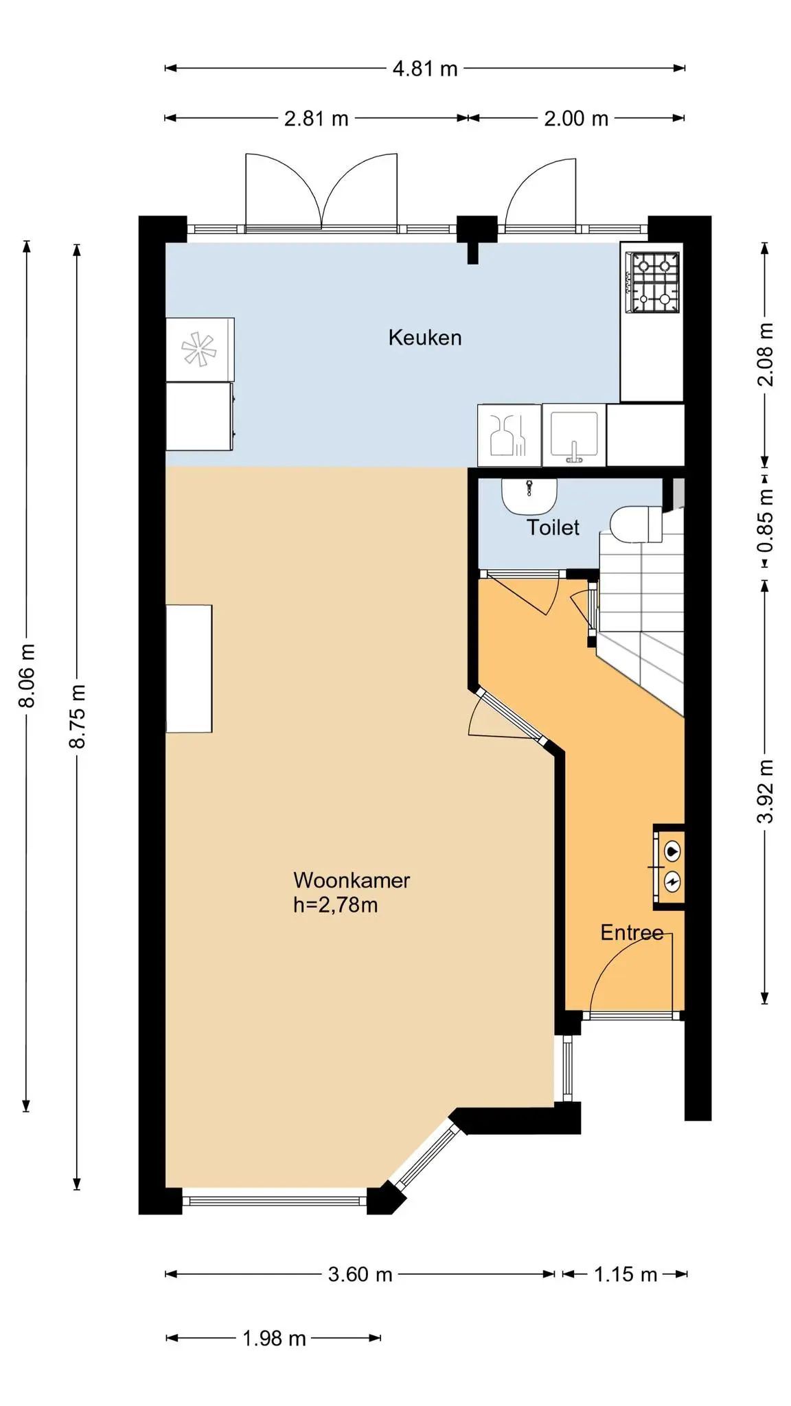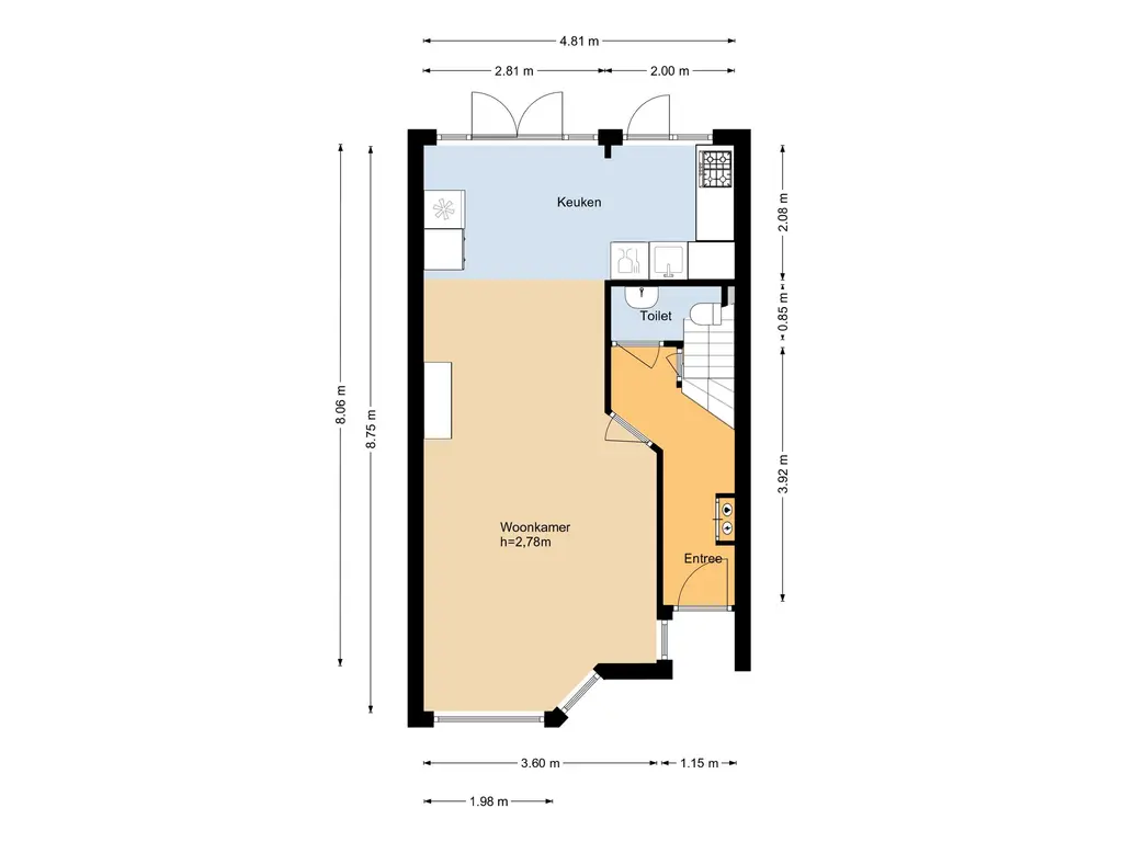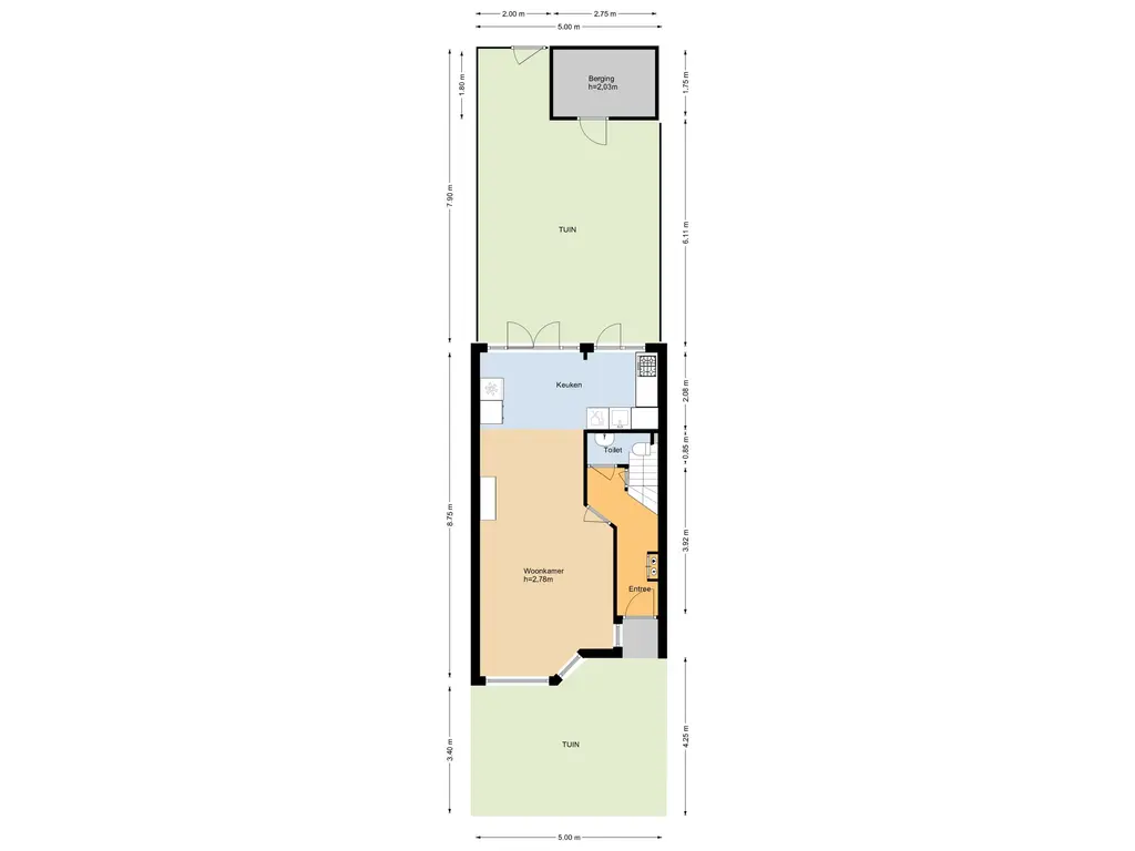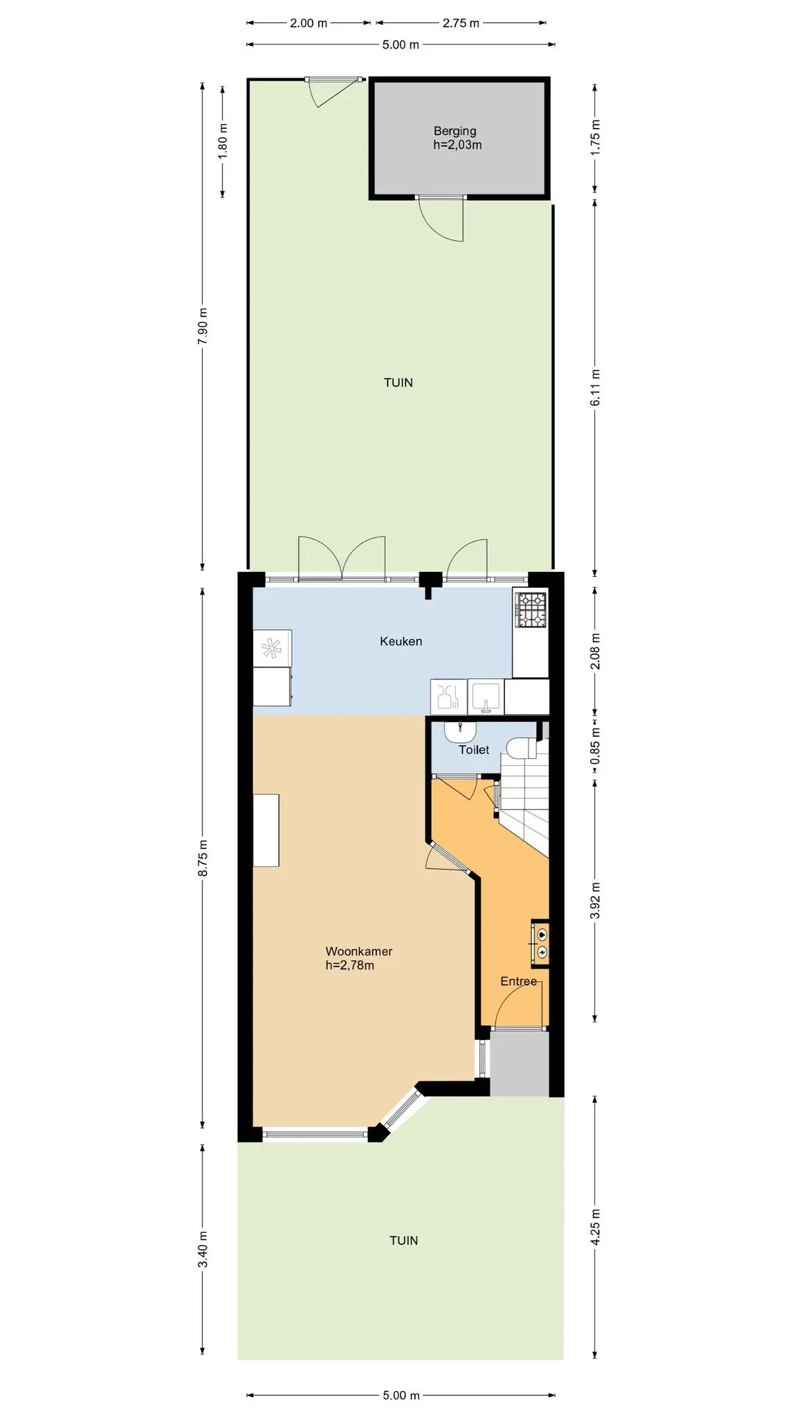 De sfeervolle voortuin zorgt voor een vriendelijke aanblik en privacy vanaf de straat. Hier is plek voor een zitje of enkele potten, waardoor je ook aan de voorzijde van het huis kunt genieten van de ochtendzon. Je stapt de woning binnen in de hal met originele granito vloer, toilet, meterkast (11 groepen en aardlekschakelaar) en trapopgang naar de 1e verdieping.