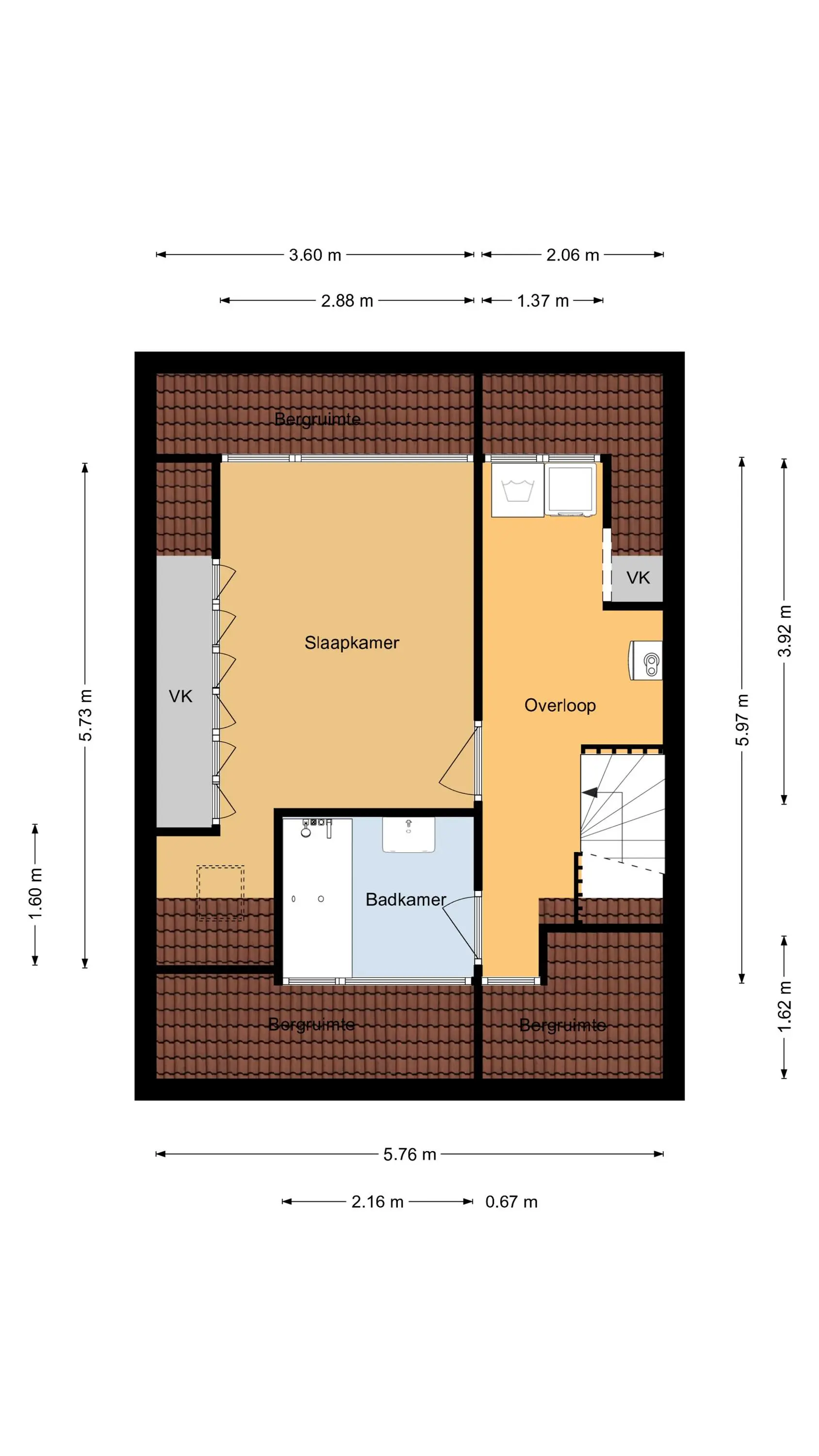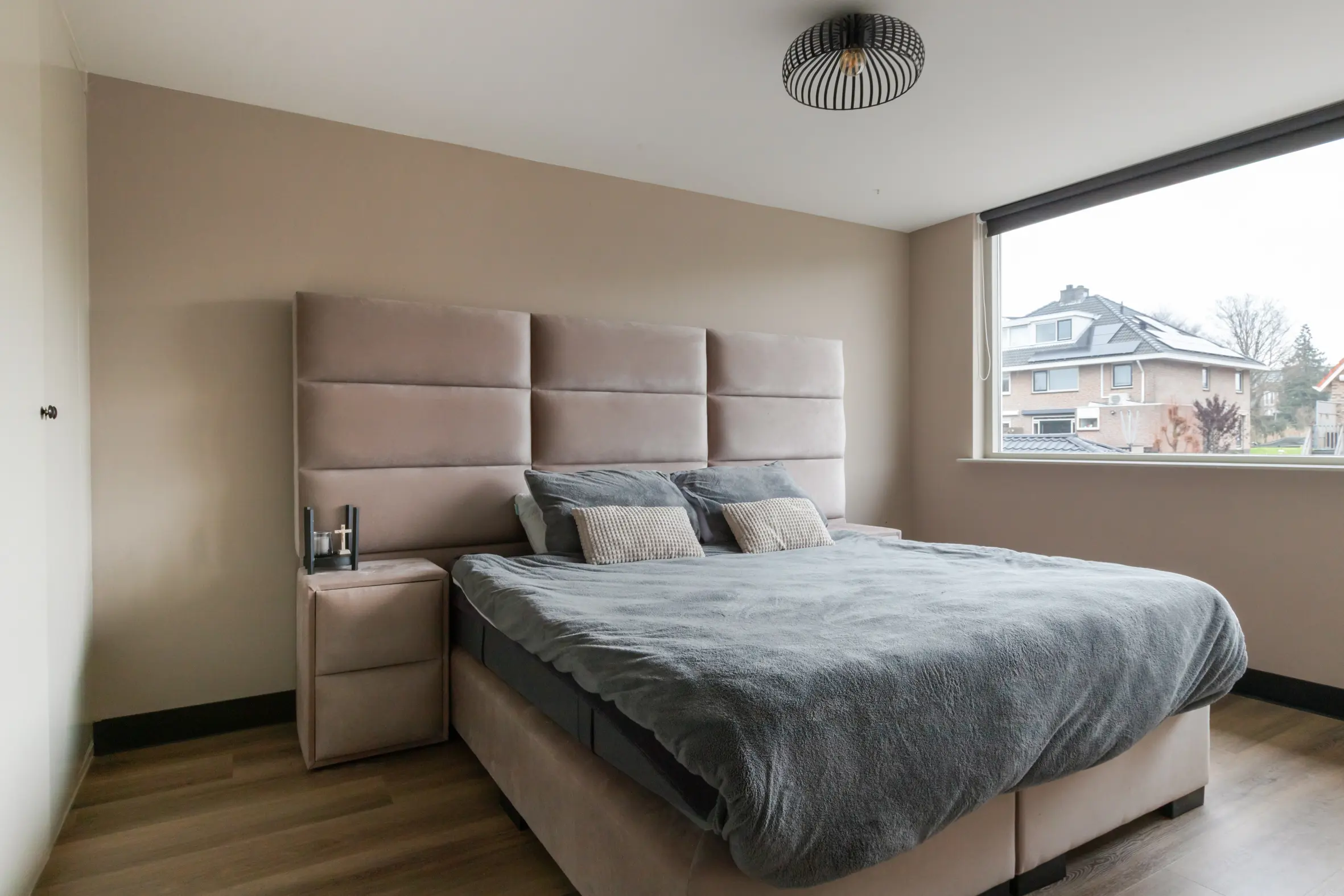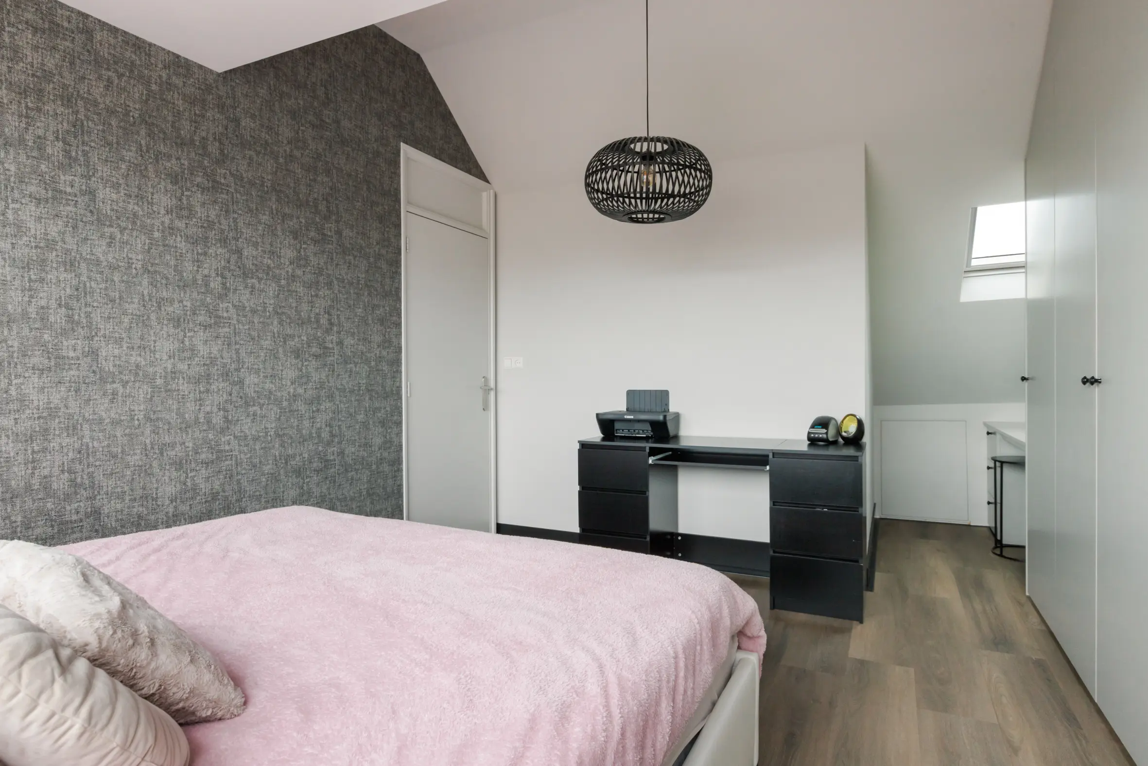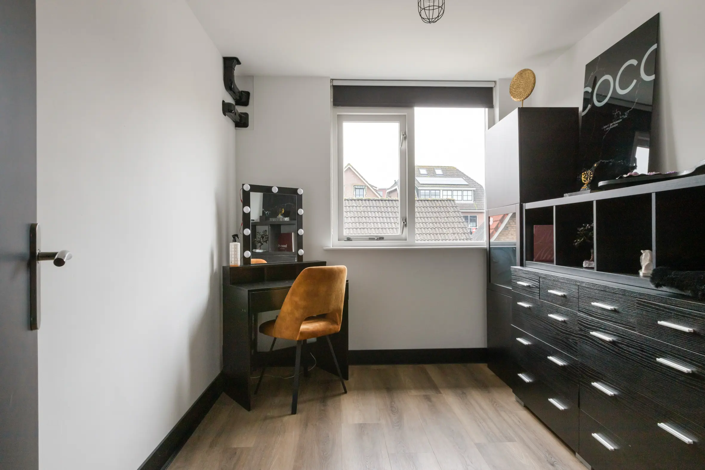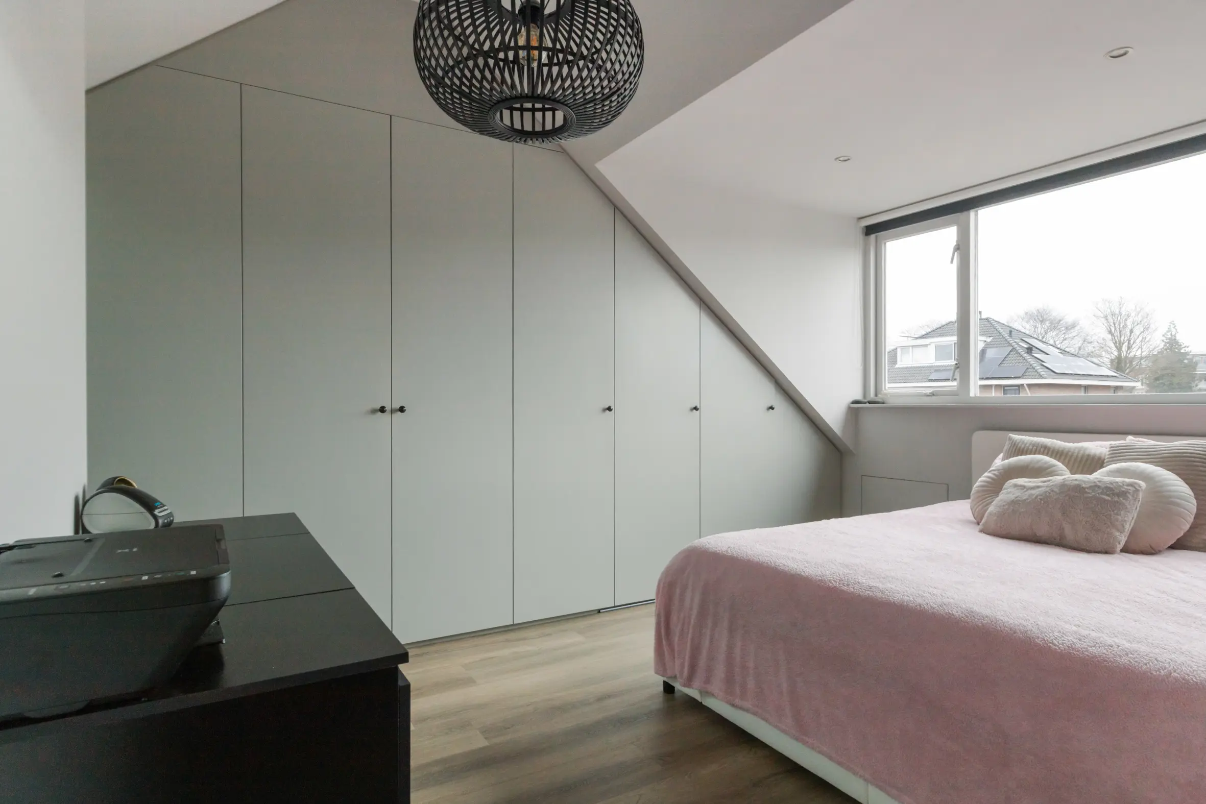 Een royale overloop biedt ruimte aan de wasmachine, cv-ketel en ventilatiebox. De vierde slaapkamer is een volwaardige ruimte met ingebouwde kasten, airco, dakkapel en een eigen badkamer. Deze tweede badkamer is voorzien van: