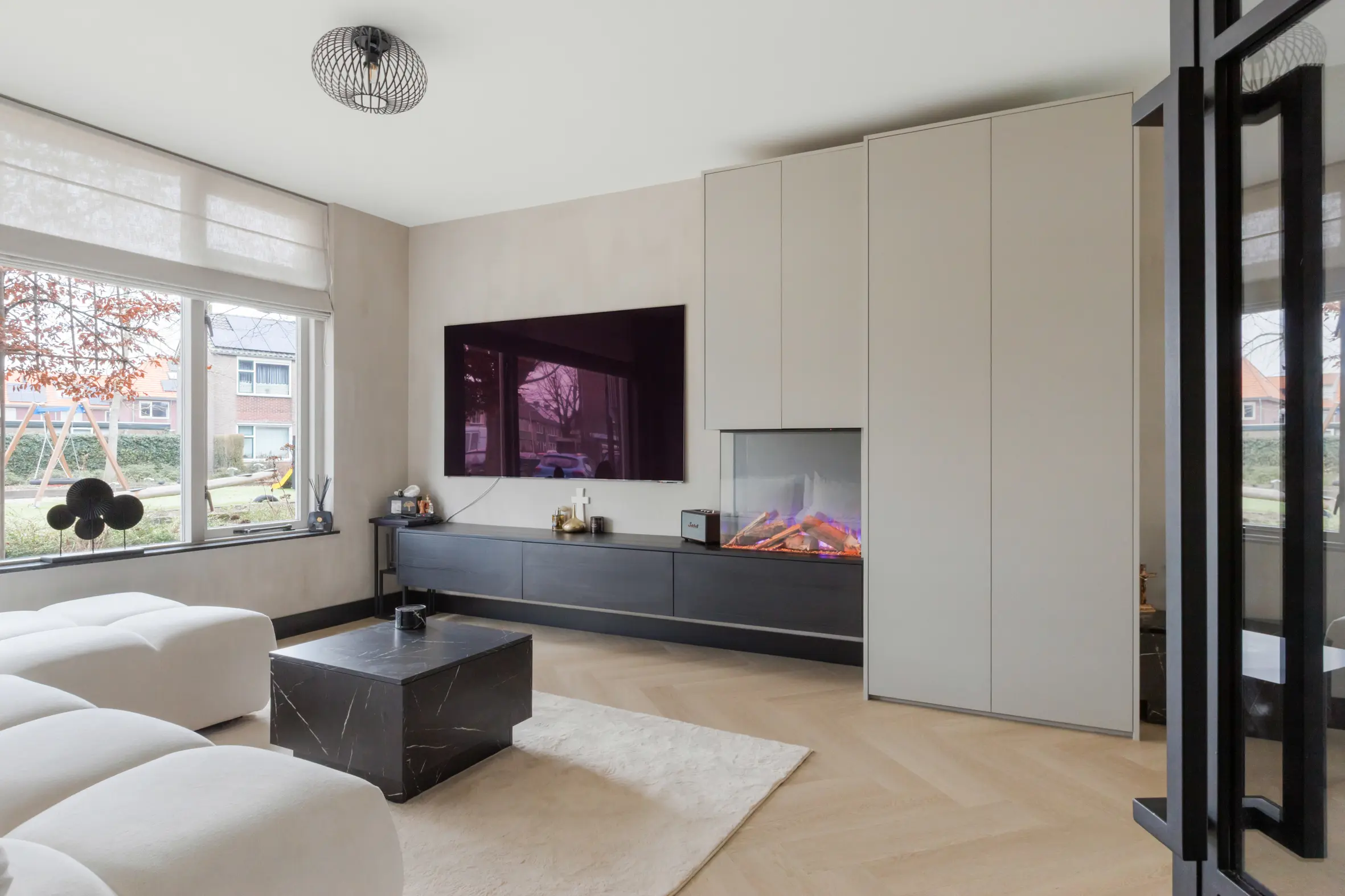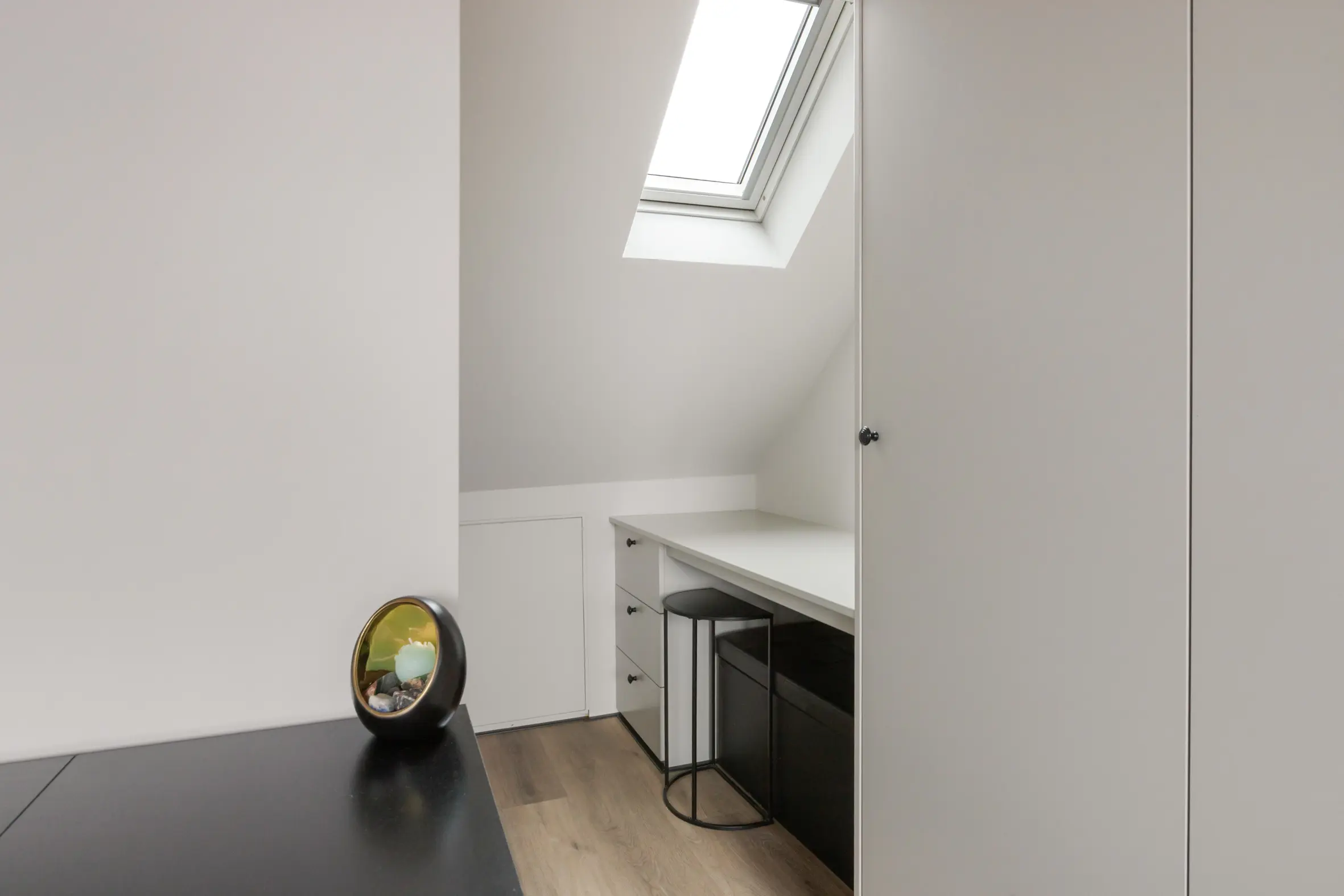- Diverse ingebouwde kasten en opbergruimte;