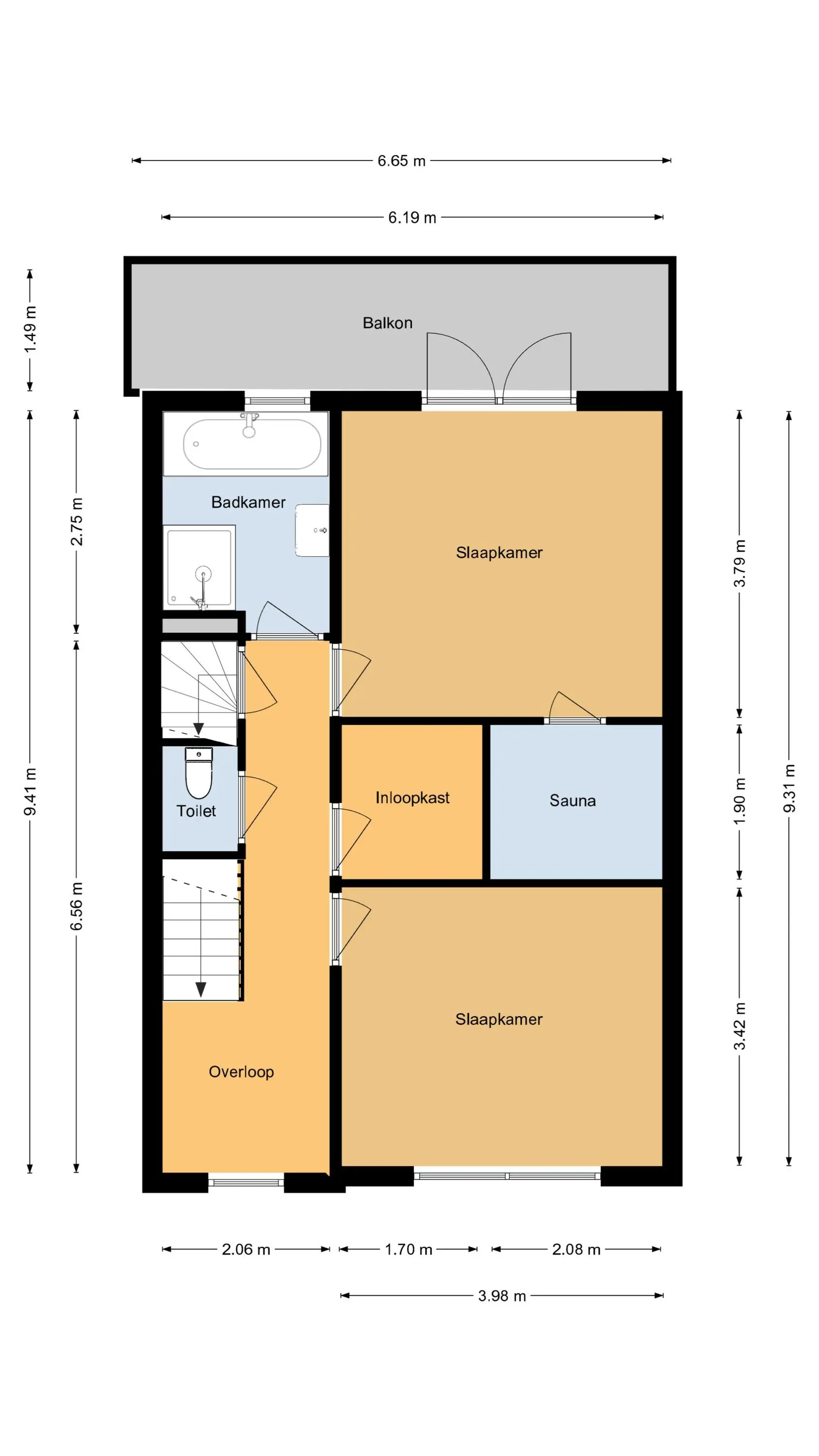 Op de eerste verdieping bevinden zich twee ruime slaapkamers. De master bedroom aan de achterzijde is uitgerust met airconditioning, een eigen sauna én een balkon. De slaapkamer aan de voorzijde is ook voorzien van airco.