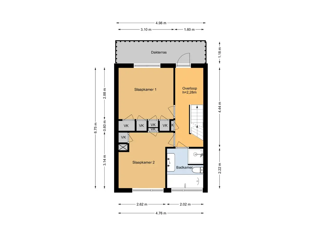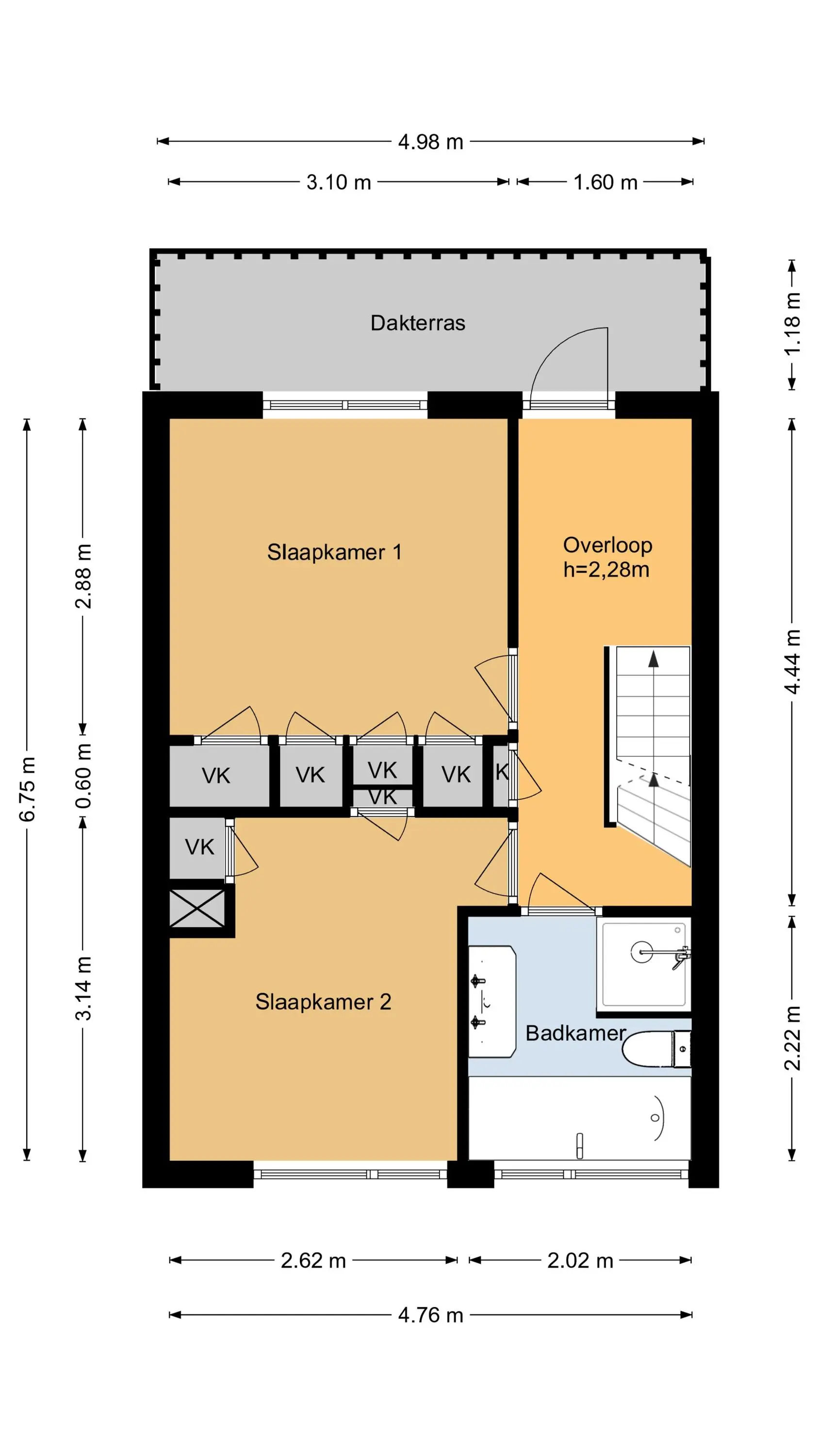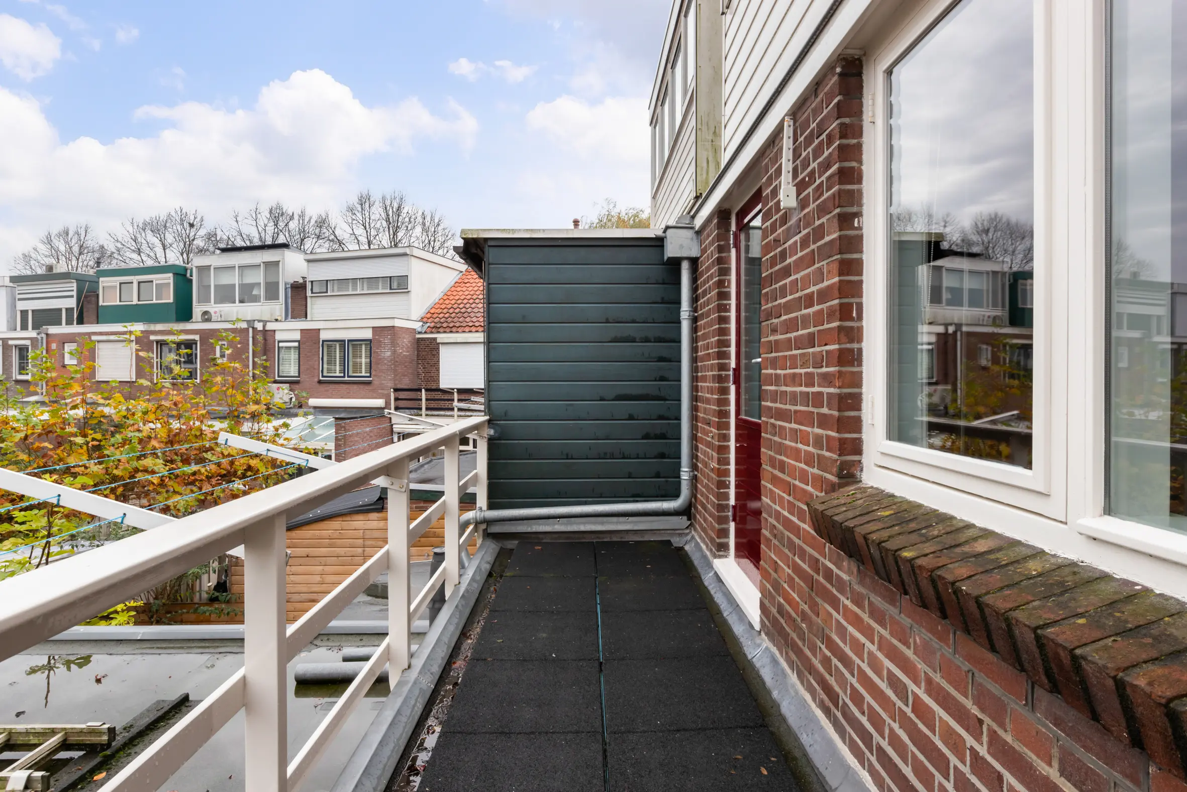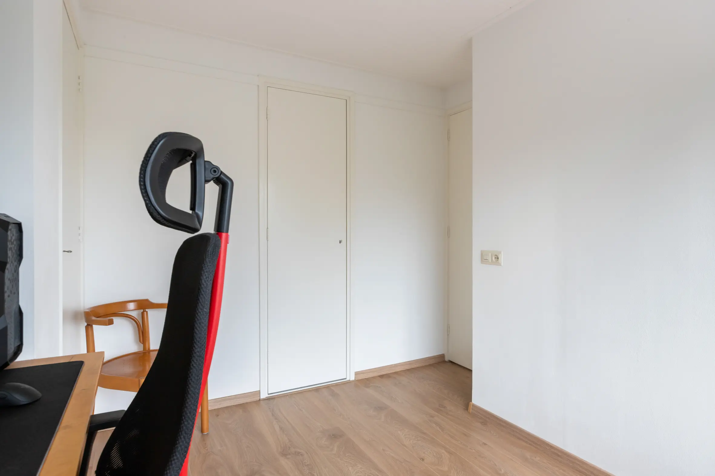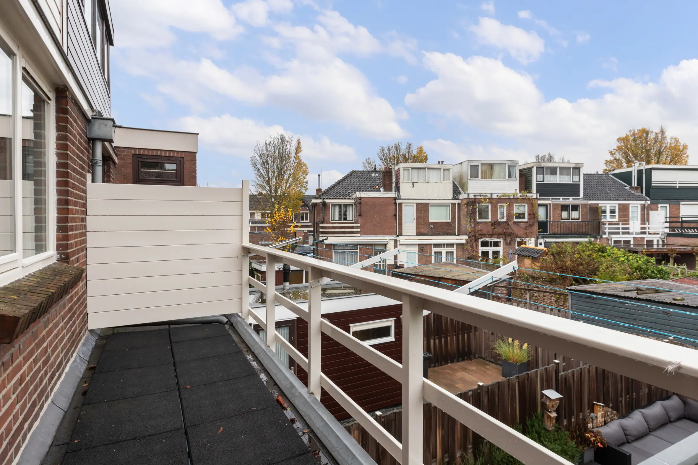Vanaf de ruime overloop zijn er 2 slaapkamers, de badkamer en het balkon te bereiken. De eerste slaapkamer is aan de achterzijde van de woning gesitueerd. Het raam in de achtergevel zorgt hier voor een fijne hoeveelheid lichtinval. De badkamer en slaapkamer 2 bevinden zich aan de voorzijde van de woning. Beide slaapkamers zijn voorzien van een ingebouwde kastenwand, wat veel opbergruimte biedt.