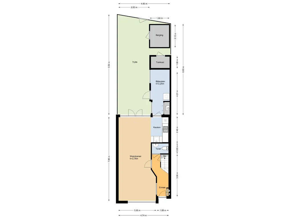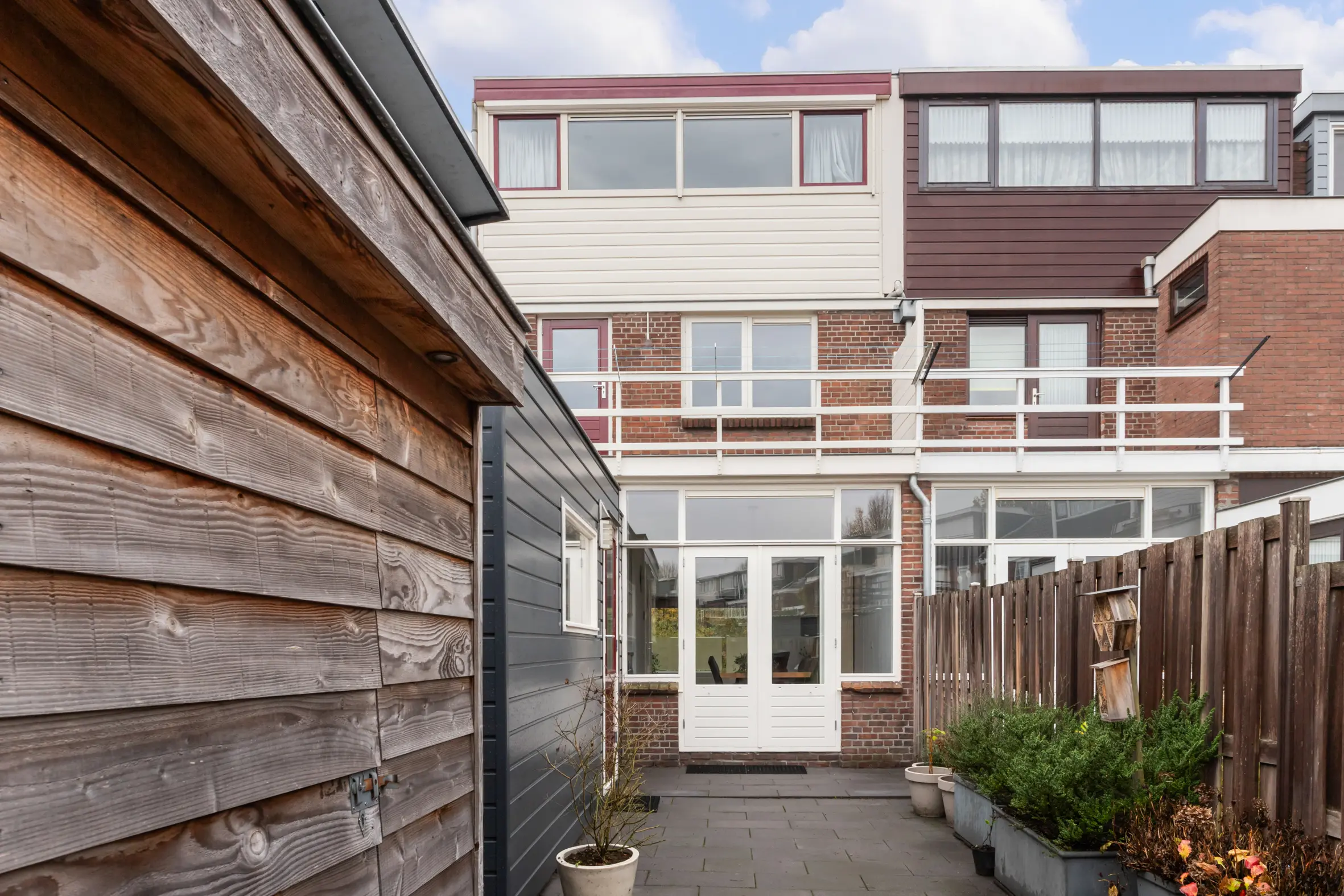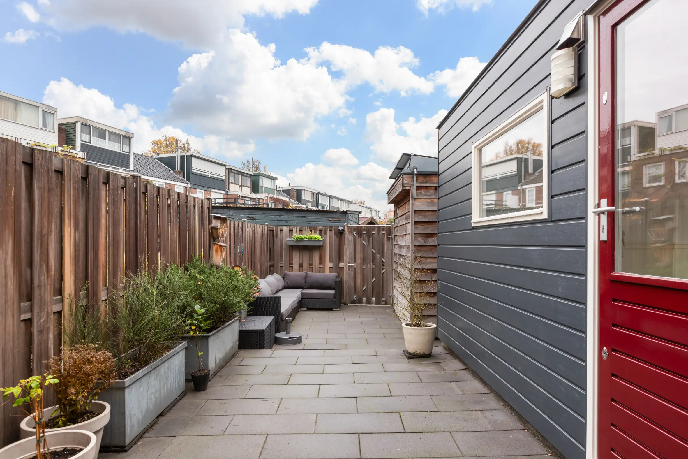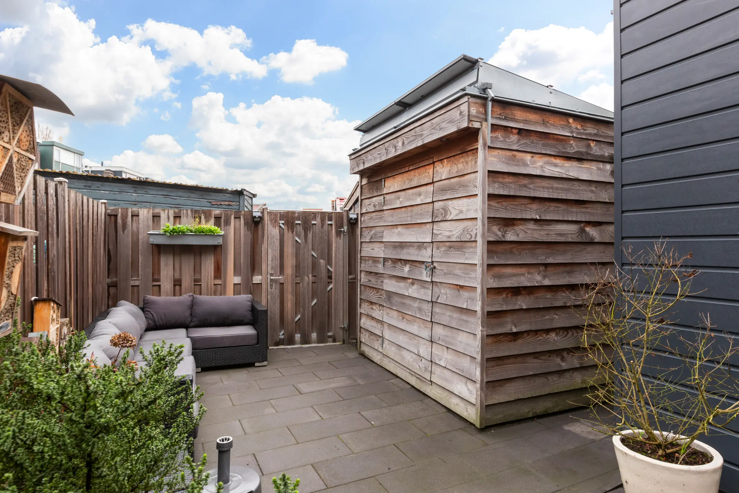 Diepe achtertuin van ca. 60 m² is gelegen op het noordoosten en is voorzien van een nieuw geplaatste en onderheide vrijstaande houten berging en een achterom. Tevens is de tuin opgehoogd en is er een nieuwe schutting geplaatst. Tevens is de berging ook voorzien van zonnepanelen. Er is voldoende bergruimte in de achtertuin aanwezig door de vrijstaande houten berging én een tuinkast.
