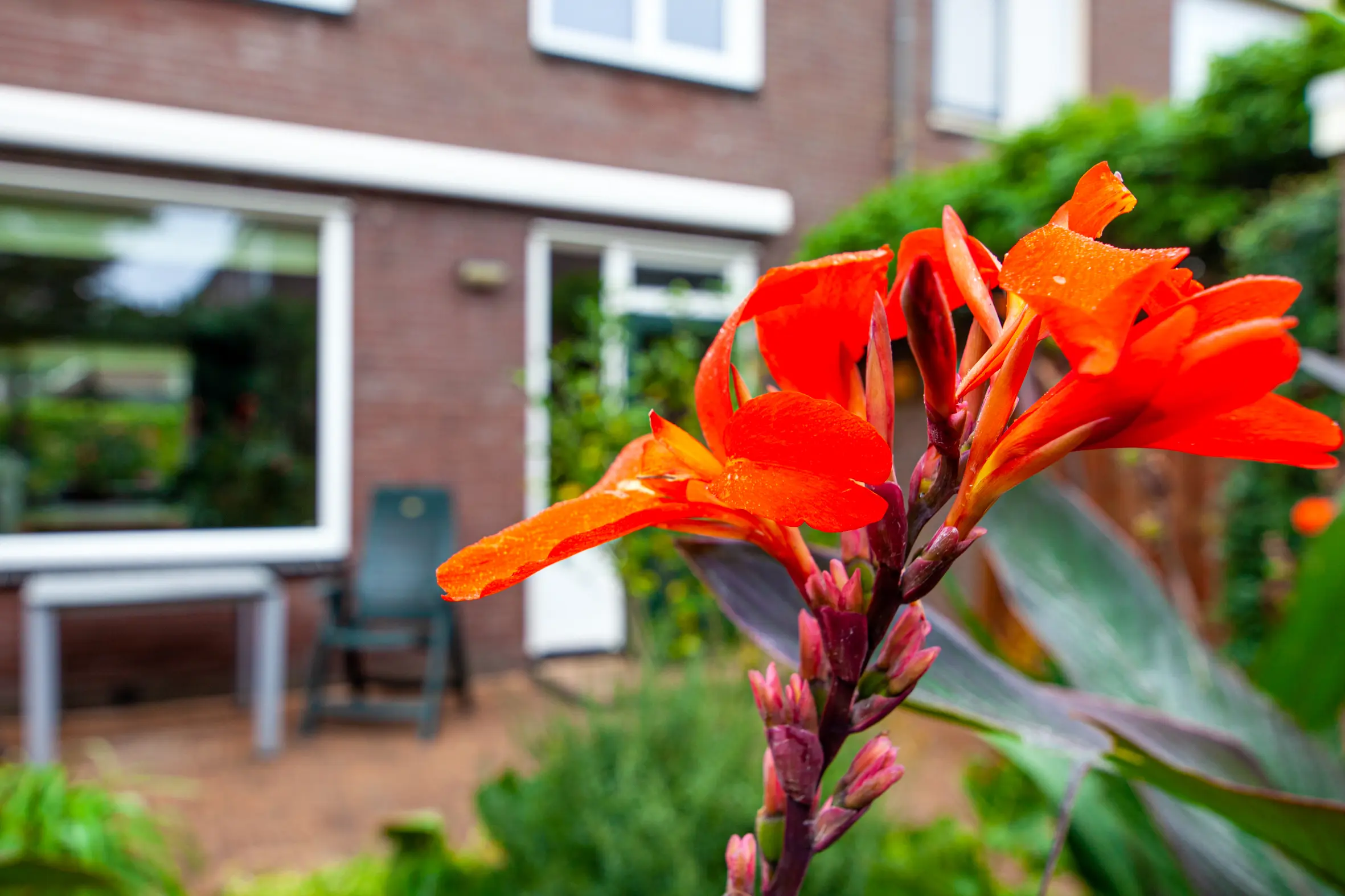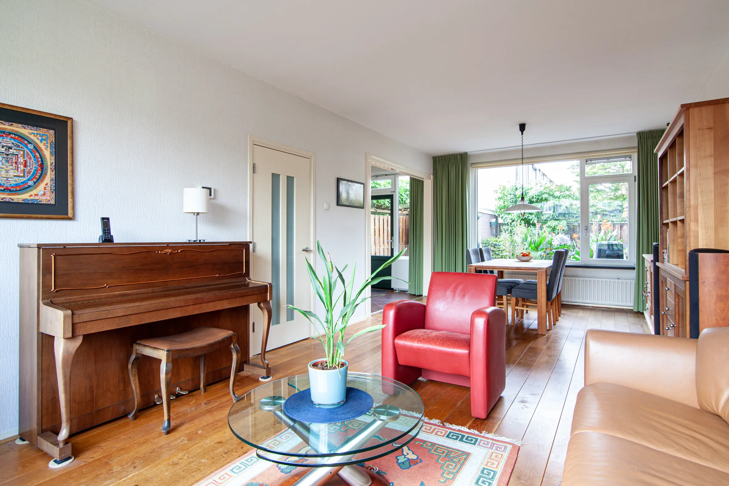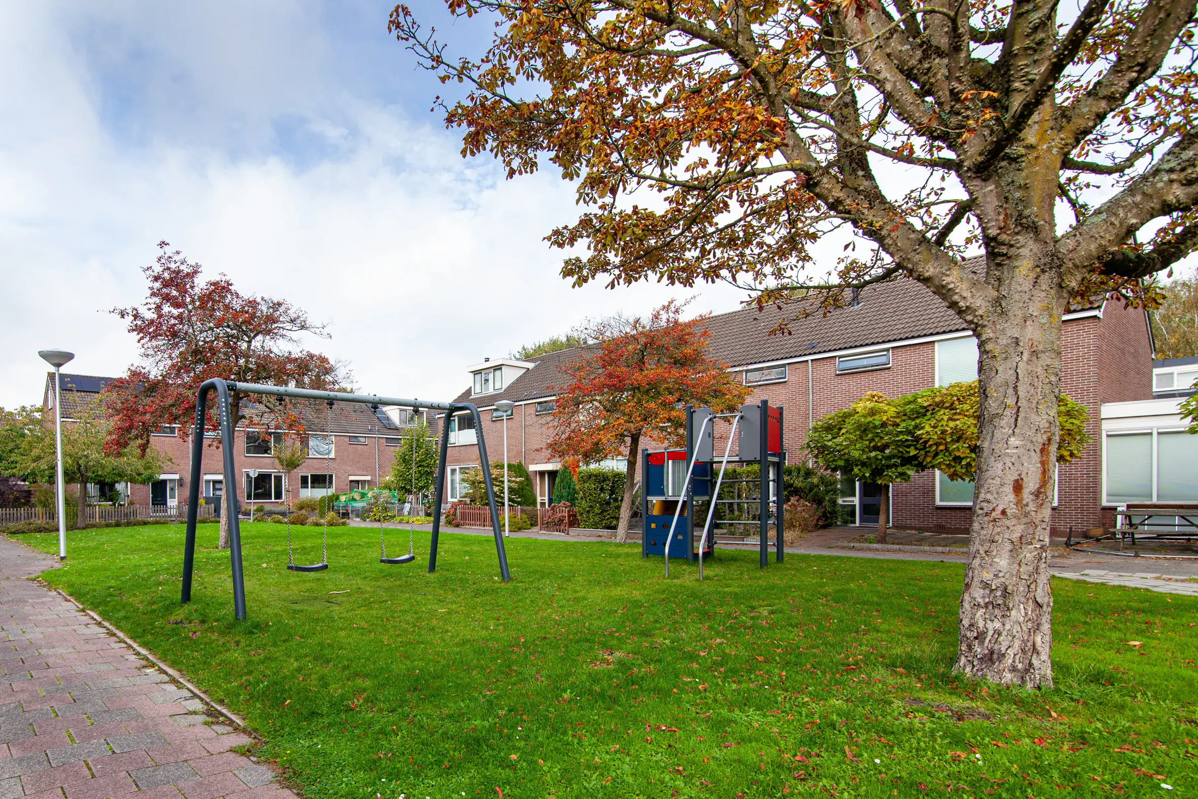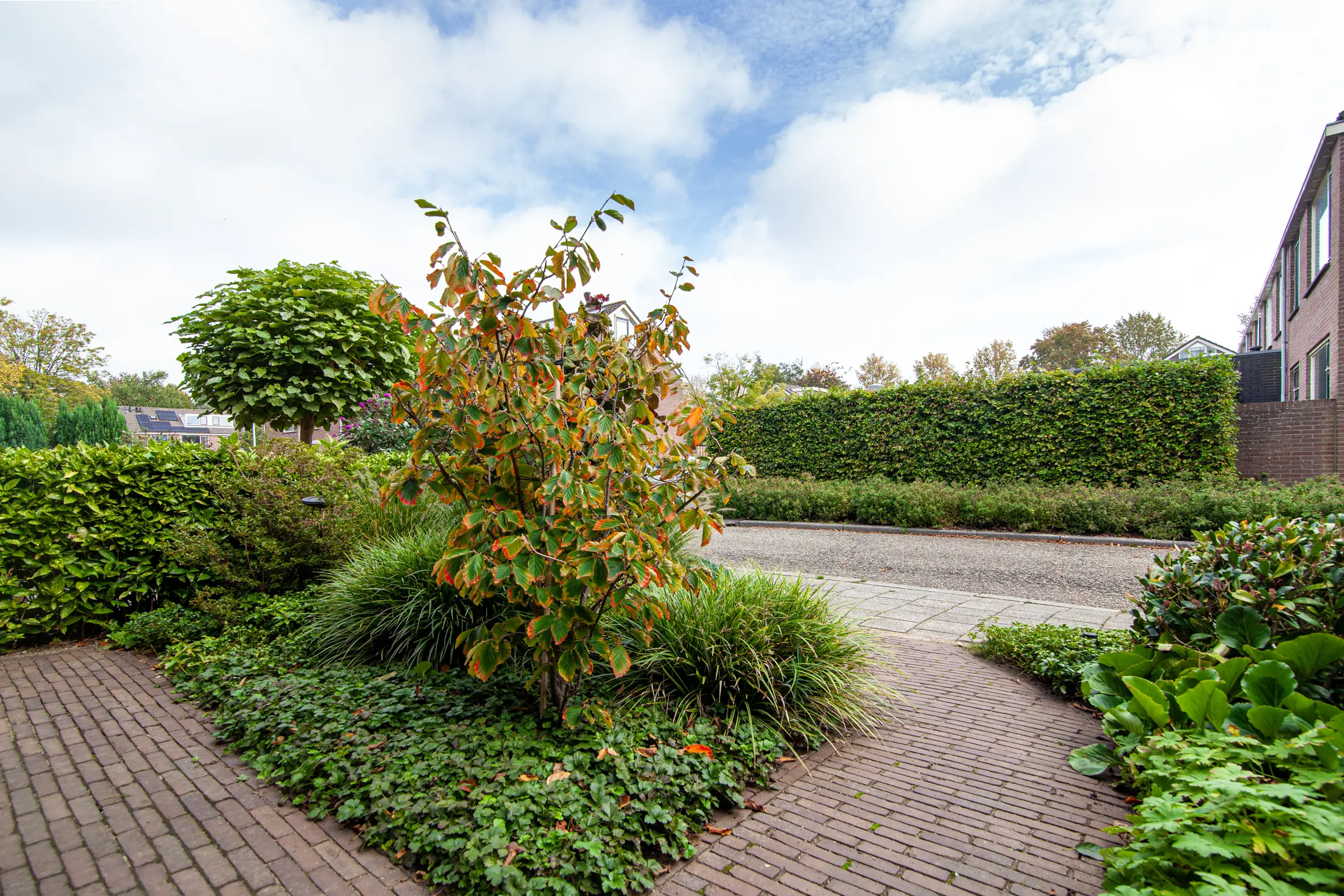 De achtertuin is ca. 10 meter diep en ligt op het westen, waardoor je hier volop van de middag- en avondzon kunt genieten. Dankzij het zonnescherm aan de achtergevel is er ook altijd een plek met schaduw te vinden. De tuin is groen en sfeervol aangelegd met een combinatie van beplanting en bestrating. Achterin bevindt zich een stenen berging, voorzien van elektra, en een handige buitenkraan. Via het achterom bereik je eenvoudig het achterpad, ideaal voor de fiets of het tuinonderhoud.
