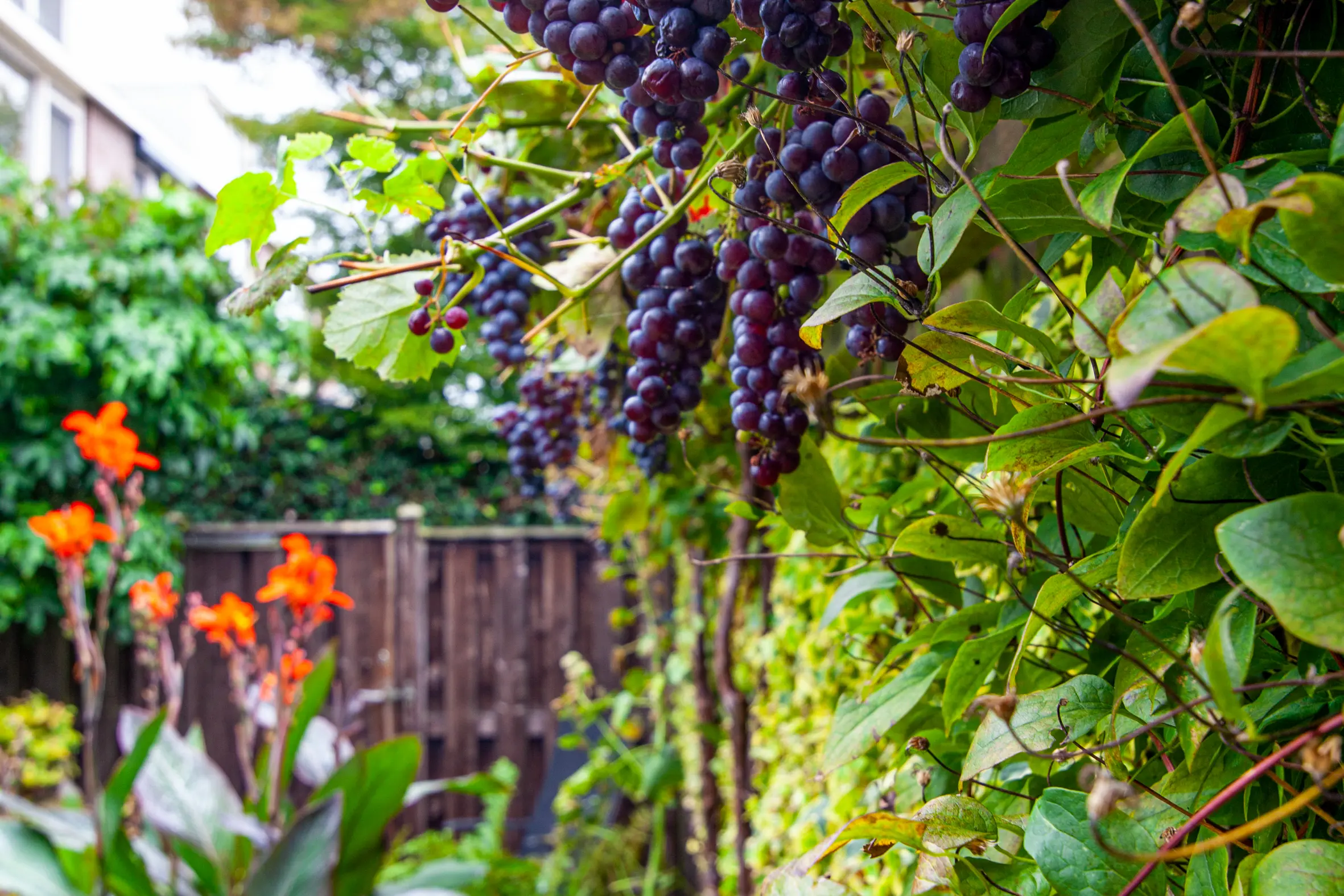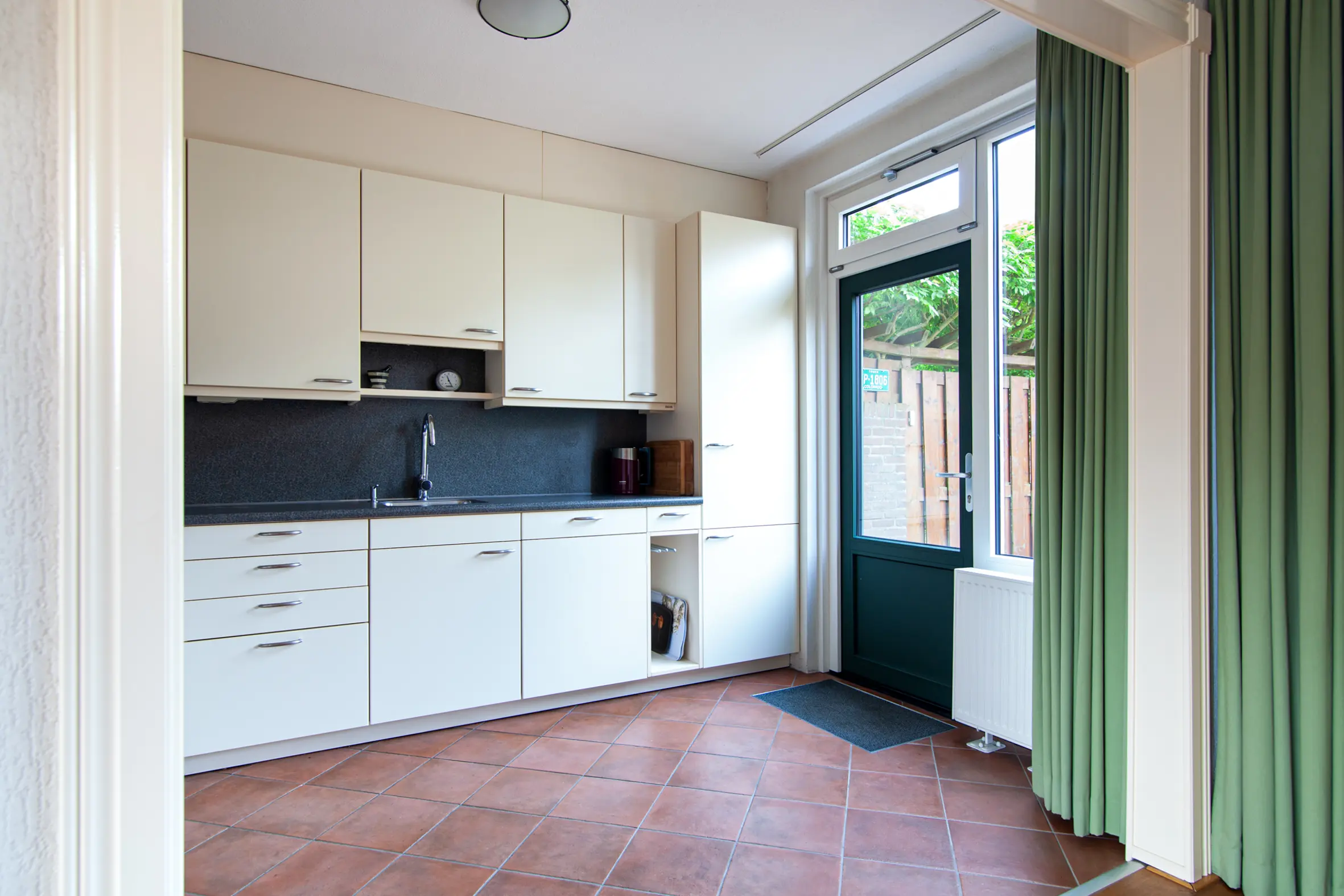 Vanuit de keuken stap je zo de zonnige achtertuin in.