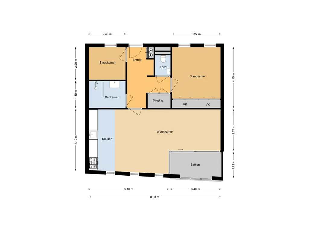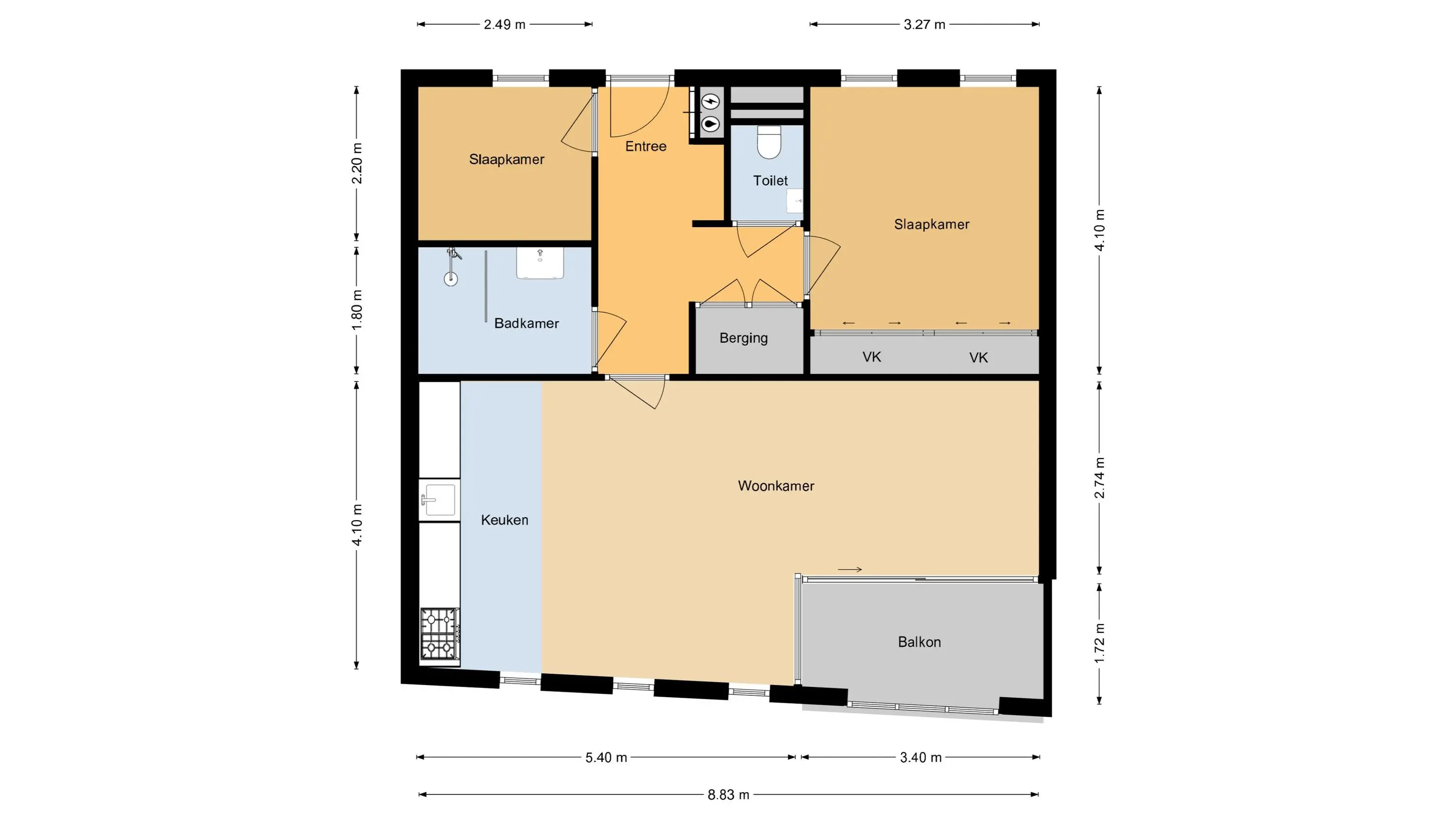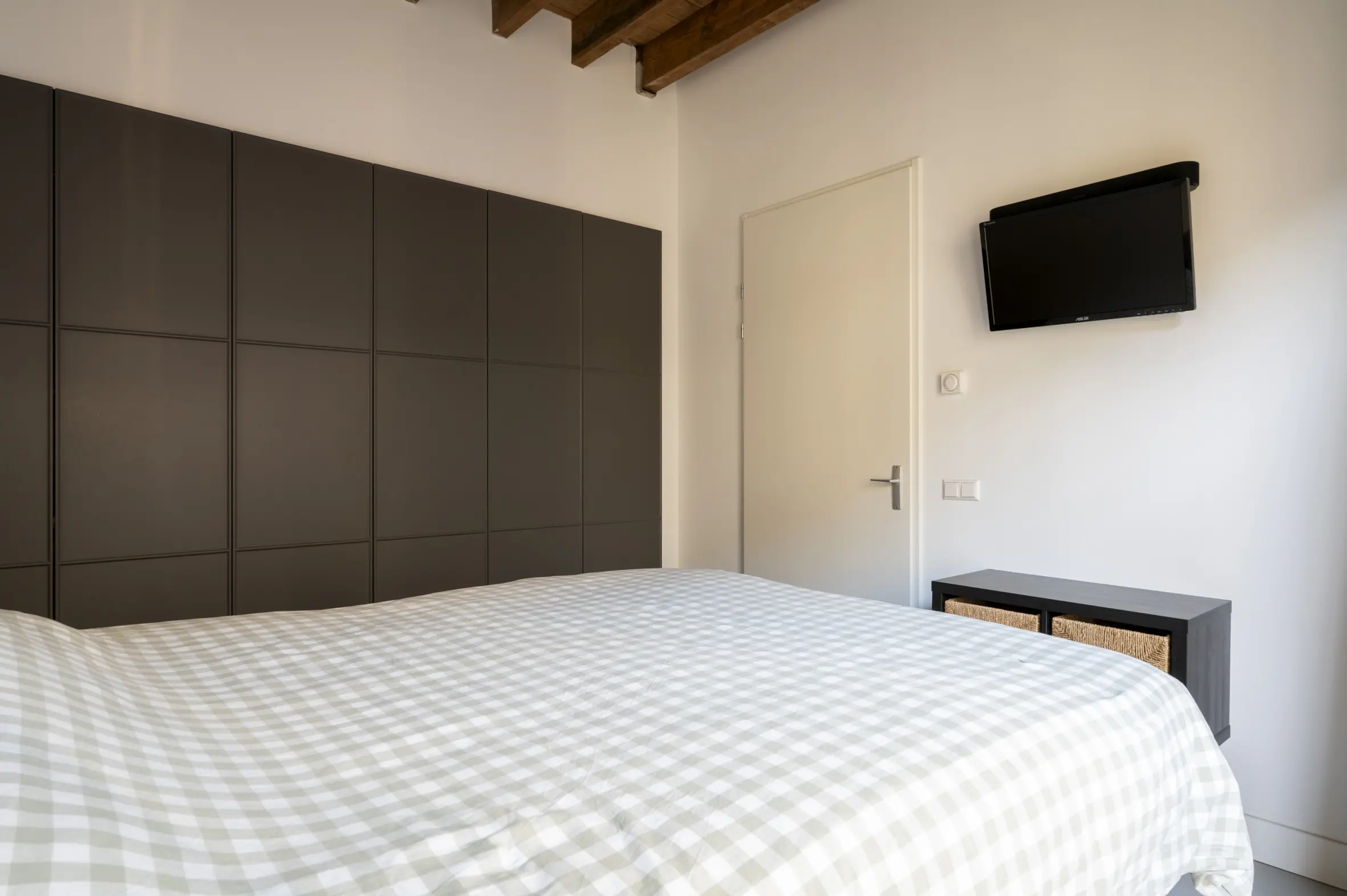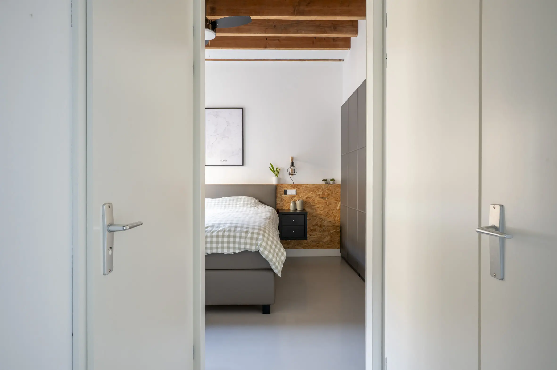 De eerste slaapkamer is ruim en heeft een handige vaste kastenwand. De tweede slaapkamer bevindt zich naast de badkamer. Er is in de hal een handige bergruimte met o.a. de wasmachine aansluiting, cv-installatie (2017), verdeler voor de vloerverwarming en mechanische ventilatie-unit.