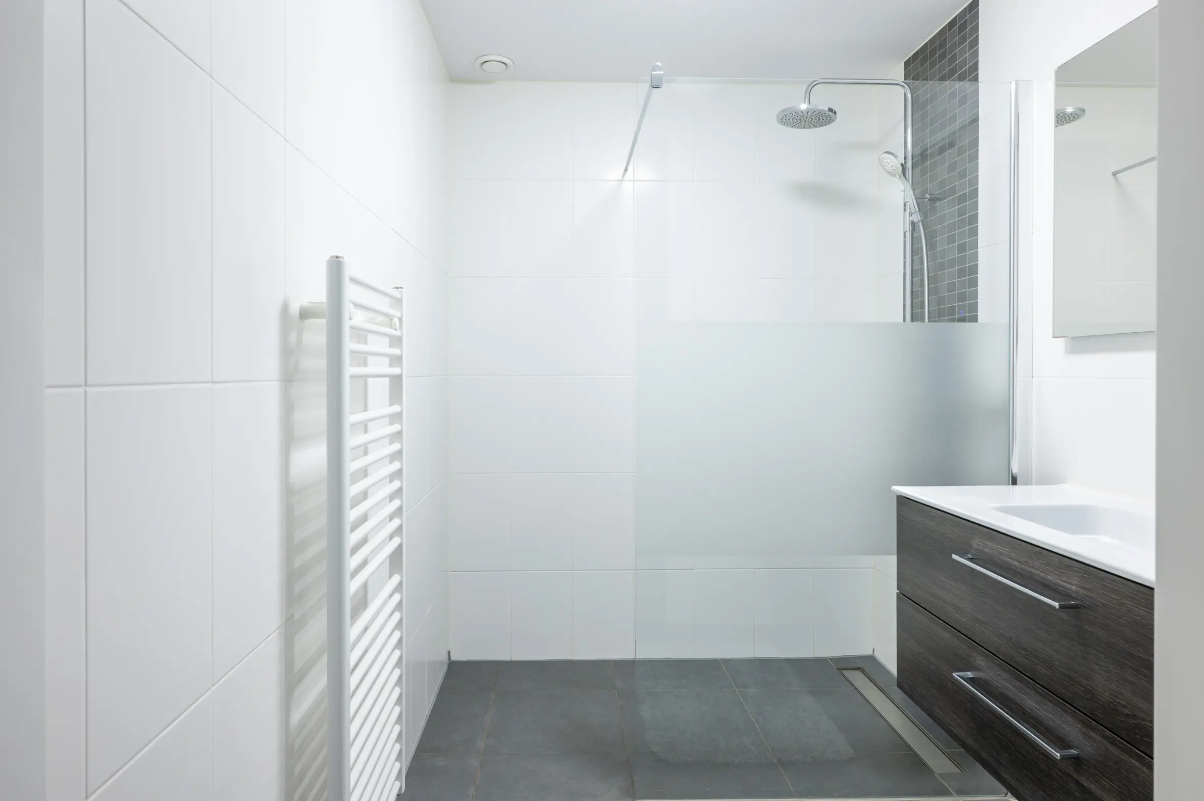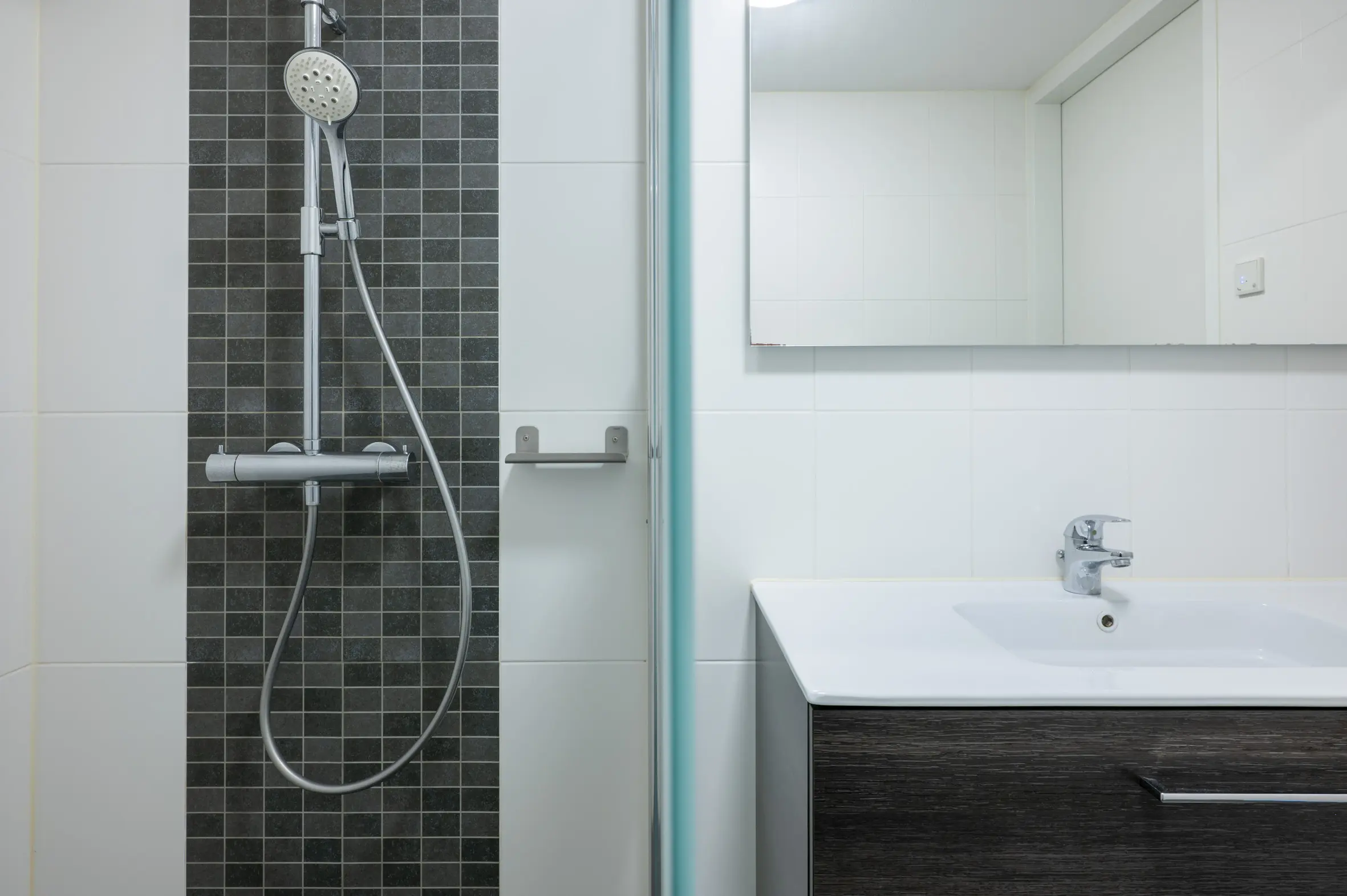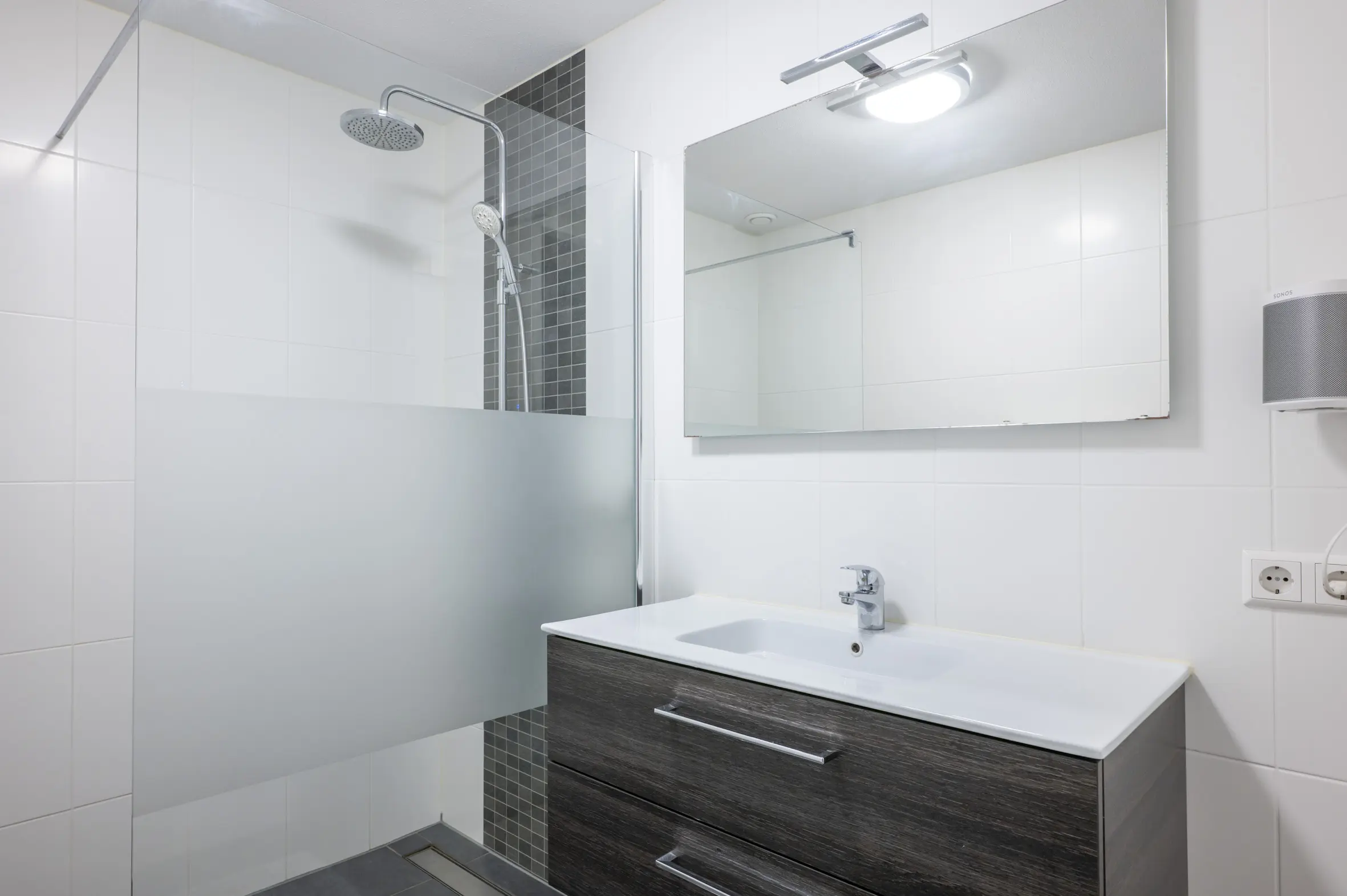 De moderne badkamer is netjes afgewerkt en voorzien van:
