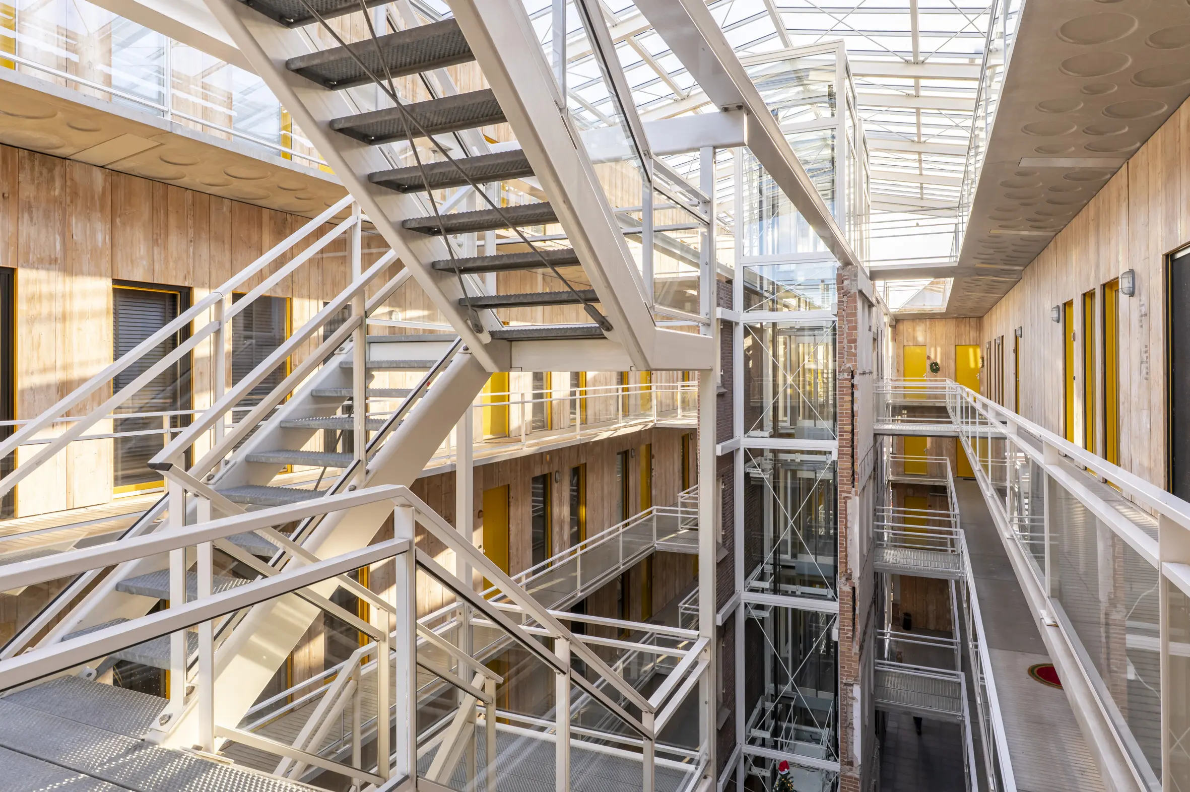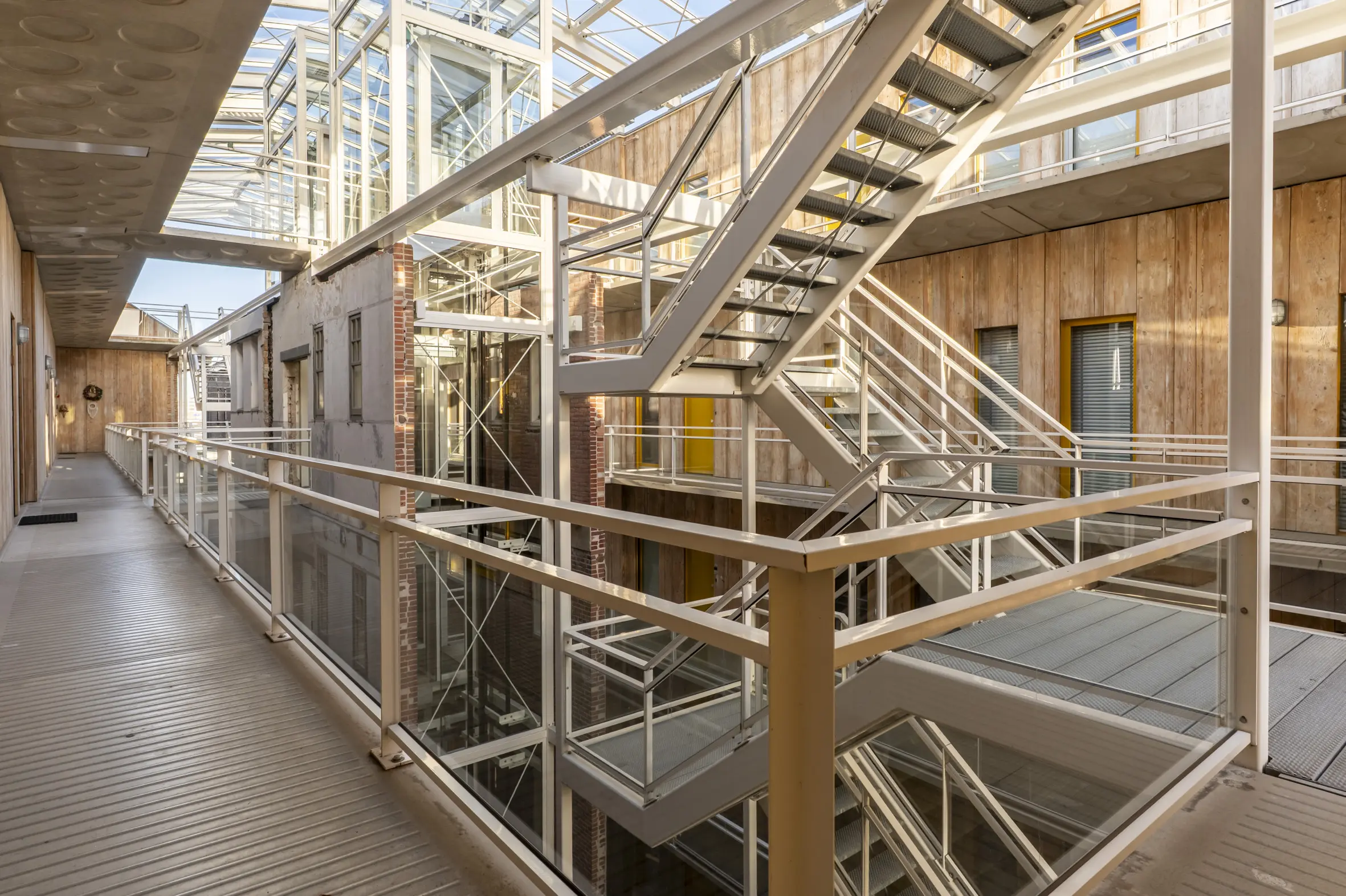 Representatieve ruime entree met bellentableau met videofooninstallatie en brievenbussen. Je stapt het complex binnen in een karakteristiek en kenmerkend atrium met trapopgang en liften. Vanuit hier zijn zowel de appartementen als de bergingen en gezamenlijke fietsenstalling eenvoudig te bereiken.