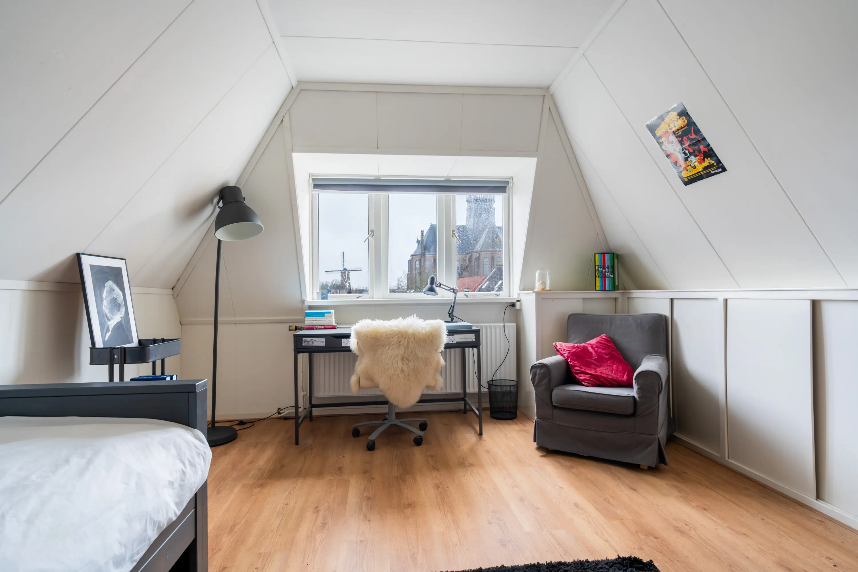 Aan de achterzijde ligt een tweede ruime slaapkamer met een leuk uitzicht over de karakteristieke panden van de binnenstad.
