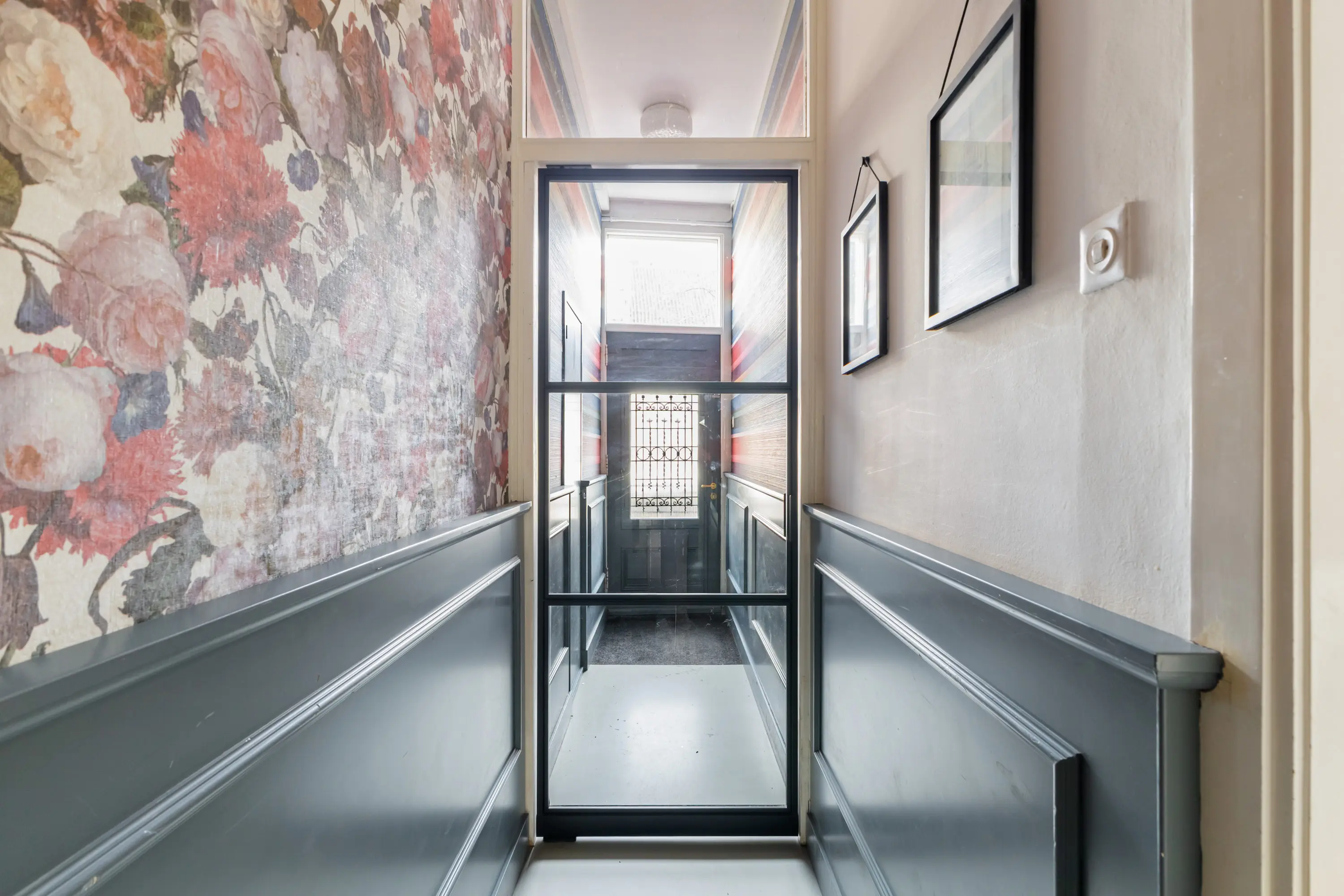 Via de entree kom je in de hal met meterkast en garderobekast. Vanuit de hal is ook de kelder bereikbaar, handig voor extra bergruimte. Aan de straatzijde bevindt zich een kamer die nu in gebruik is als kantoor en zitkamer, de houtkachel zorgt hier voor extra sfeer.