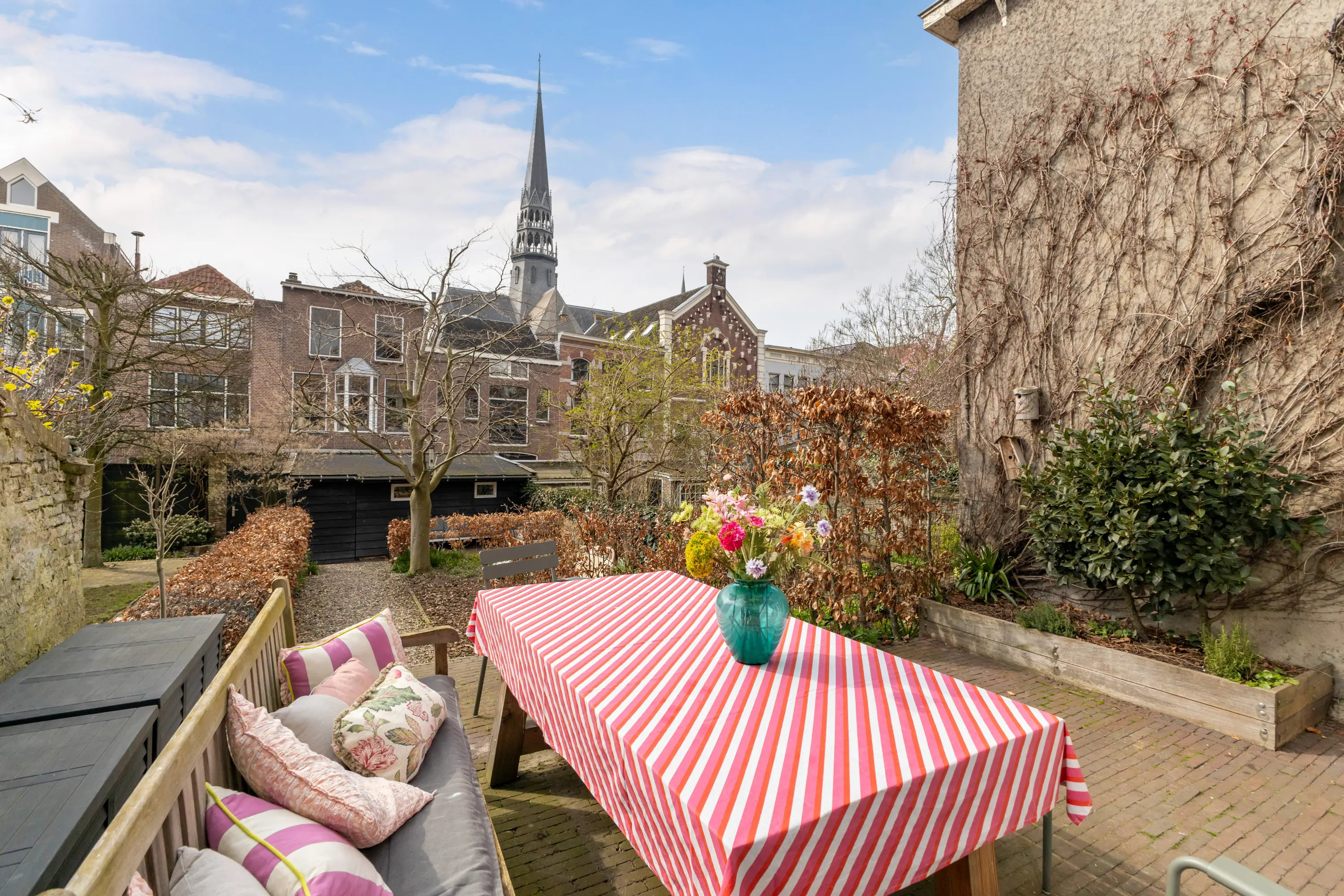 "Wonen in ons grachtenpand voelt alsof je deel wordt van de indrukwekkende geschiedenis van Gouda. Op de straten waar ooit Erasmus en Coornhert liepen, gaan we nu naar huis, vlakbij de plek waar de stad ooit is ontstaan — ons 19e-eeuws huis op een originele middeleeuwse kavel die ook nu nog reikt van gracht tot gracht. Het maakt duidelijk dat het waar is wat Erasmus schreef, namelijk dat wij reizigers zijn en geen bewoners. Vandaar ook dat wij weer doorreizen, en graag aan anderen onze bijzondere woning overdragen. Met aan de voorkant de stadse dynamiek van Westhaven en aan de achterkant de tuin waar binnenkort weer de winterkoning broedt, de tortelduiven of botvinken. De tuin komt uit in de vriendelijke Peperstraat. Het is een zeldzaam soort stilte die midden in een stad haast niet meer voorkomt. Vanaf de zolderkamer zien we ‘Nederland in het klein’, want daar is bedrijvigheid, staan de kerktoren, een molen, woonhuizen — alles in één blikveld. Wat deze plek ook zo bijzonder maakt, is de balans. In vijf minuten lopen sta je midden in op de Markt, het warm kloppend hart van de stad. En met vijf minuten fietsen ben je in het Groene Hart, tussen weilanden, oude boerderijen en waterwegen."