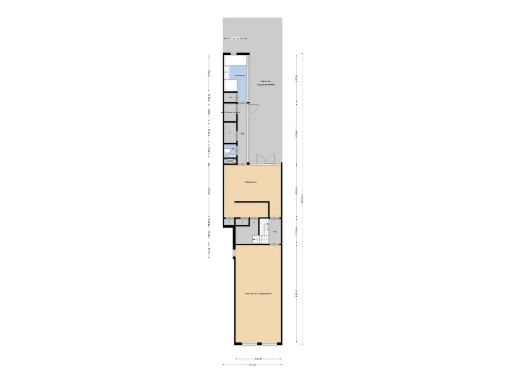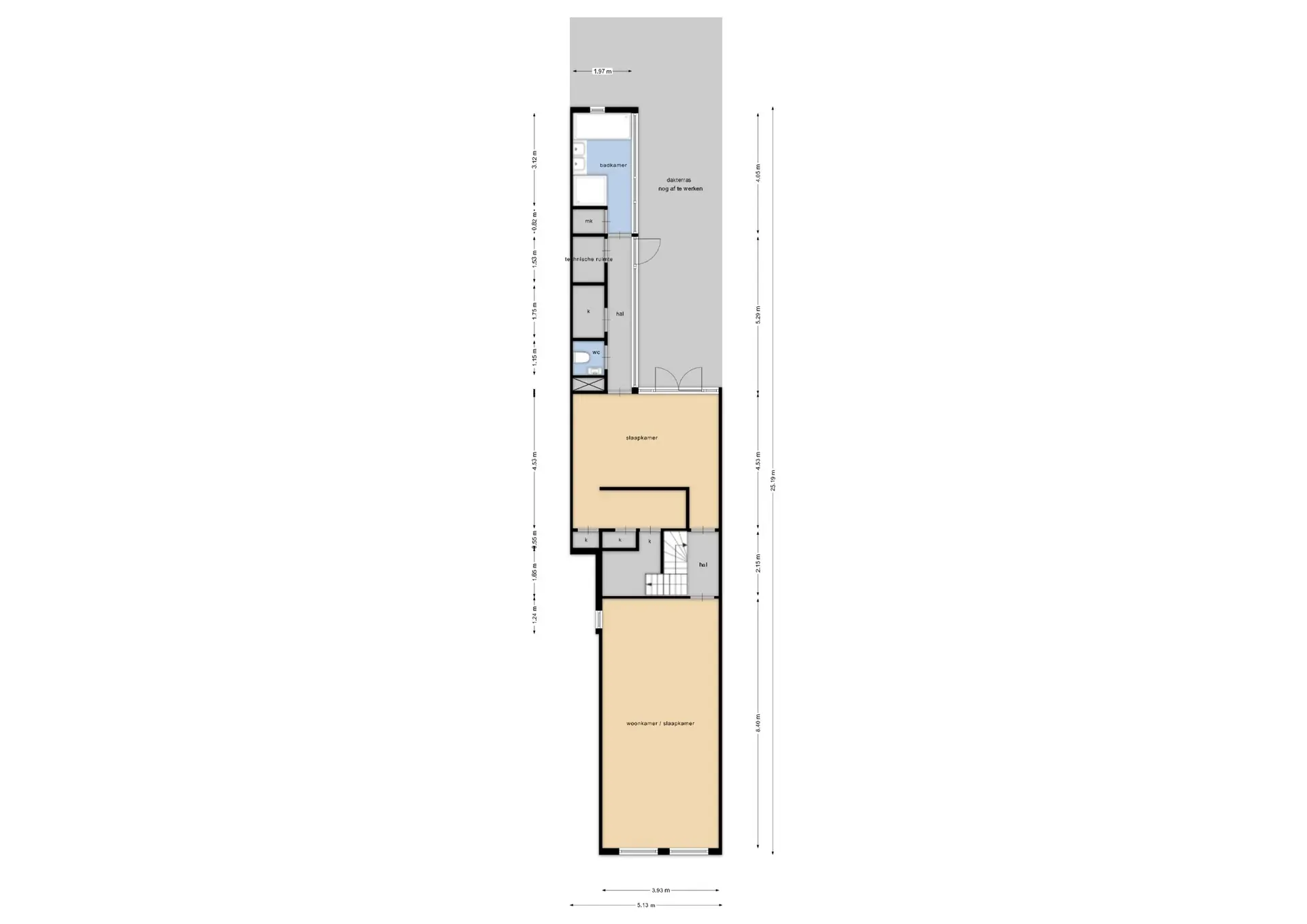 De tuin is een opvallend ruim en groen onderdeel van dit huis. Hij is netjes aangelegd en heeft een fijne afwisseling van terras en beplanting. Direct achter de woning heb je ruimte voor een buitentafel, een prettige plek voor een kop koffie of een lange zomeravond. Met een klein afstapje kom je in het lagere deel van de tuin, waar het groen voor sfeer en beschutting zorgt. Achterin staan een grote berging en er is een achterom, met de uitgang op de Peperstraat.